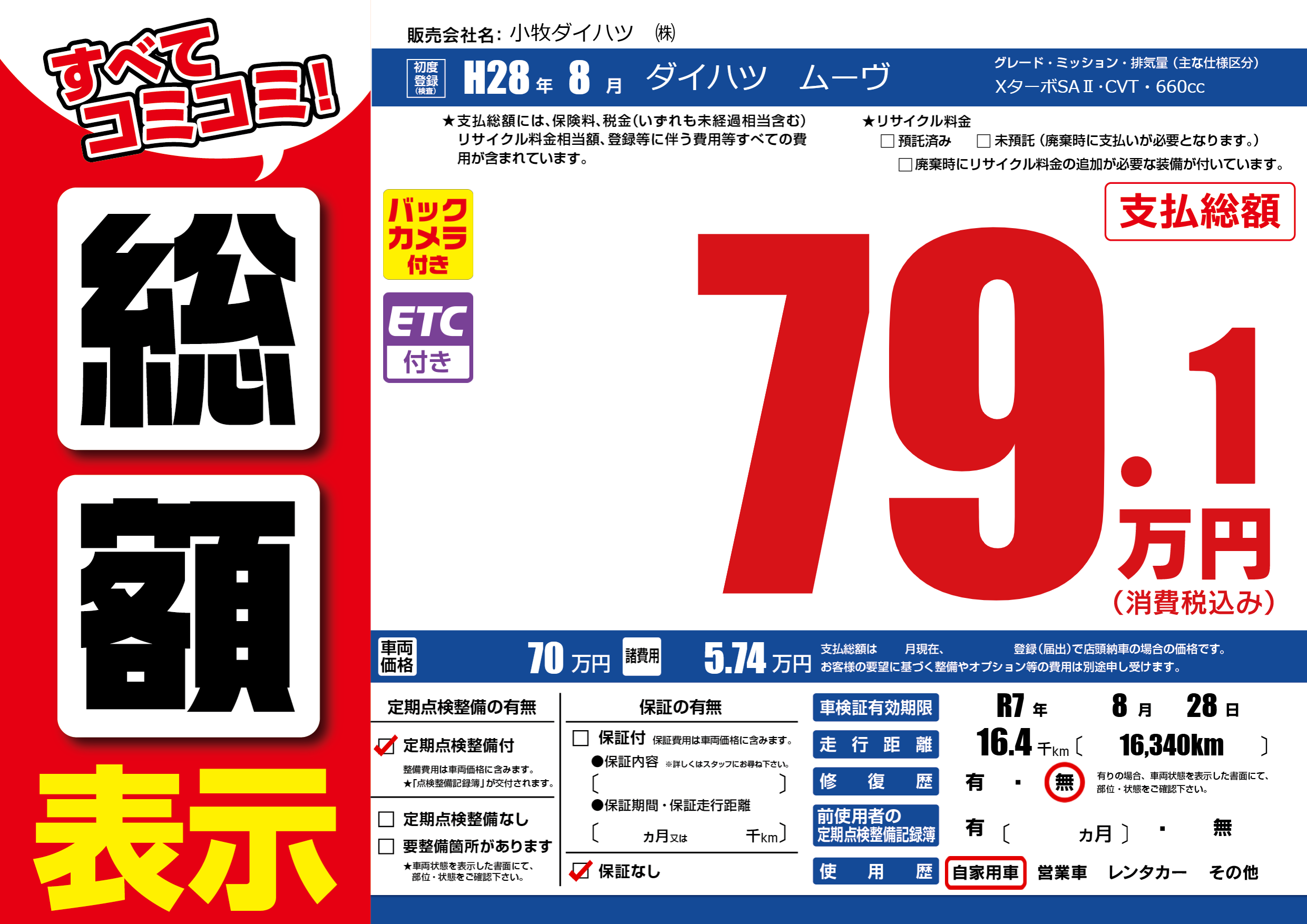 | 車検制限 | R7年 8月 28日 | ||