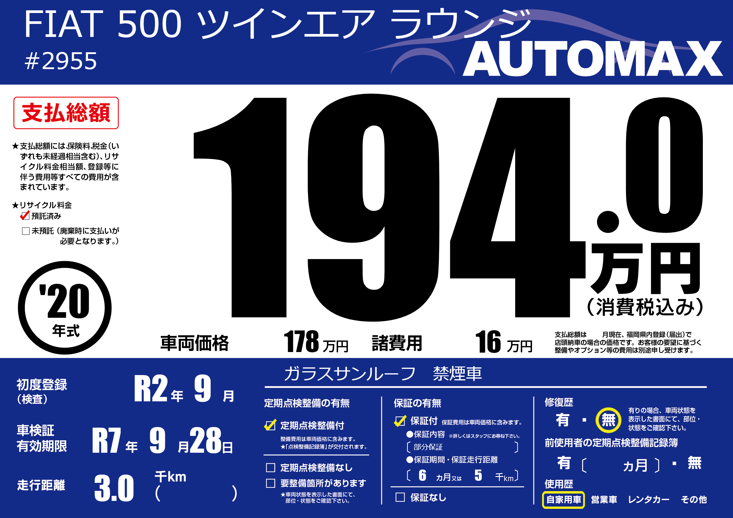| 車検制限 | R7年 9月 28日 | ||