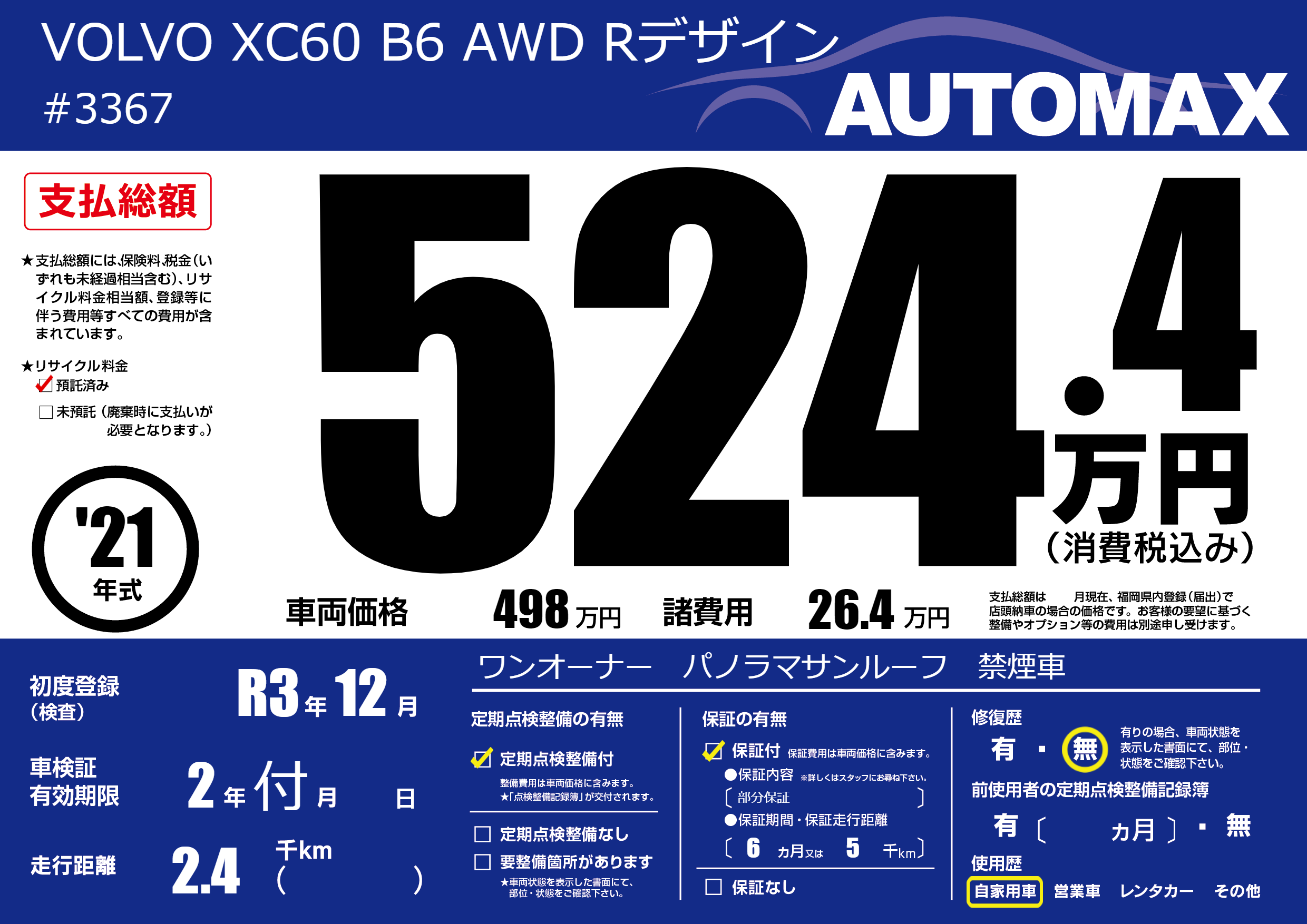 | 初年度登録 | R3年12月 | ||