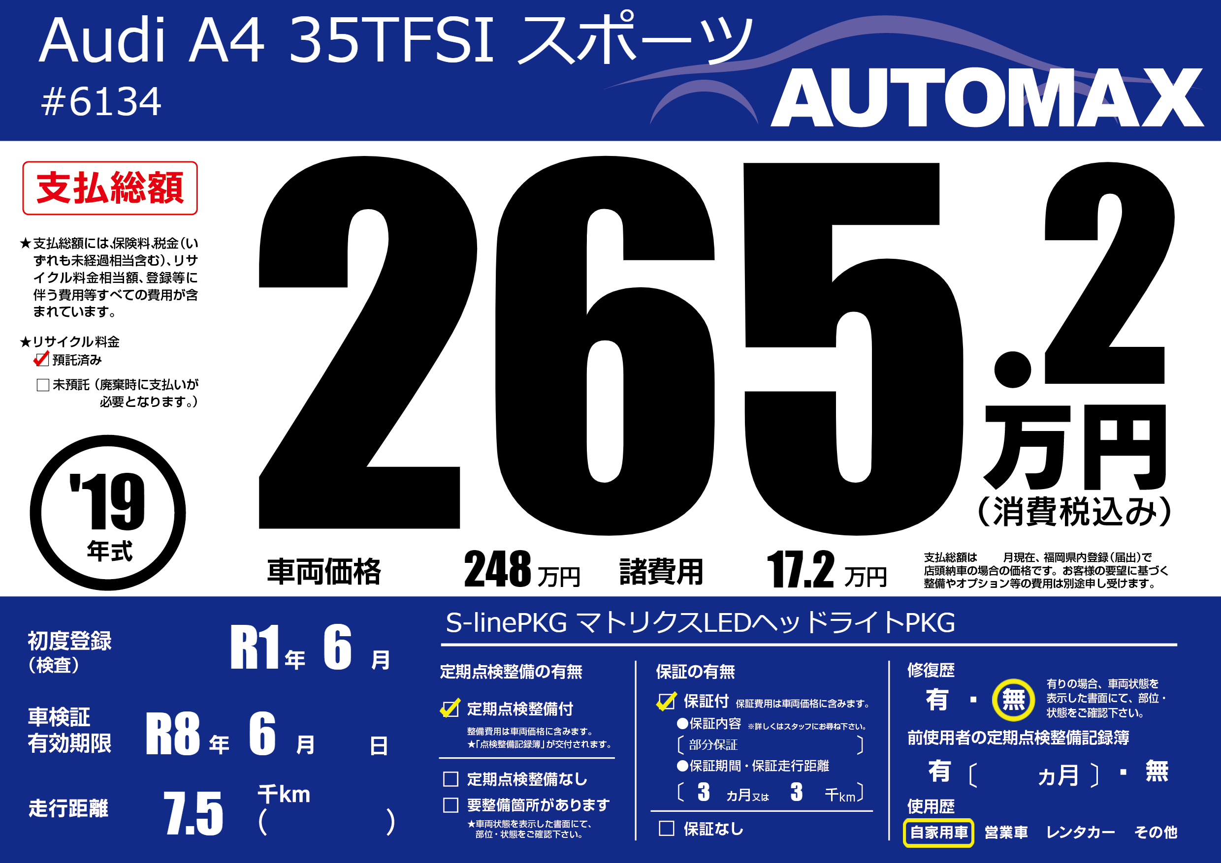 | 車検制限 | R8年 6月 - 日 | ||