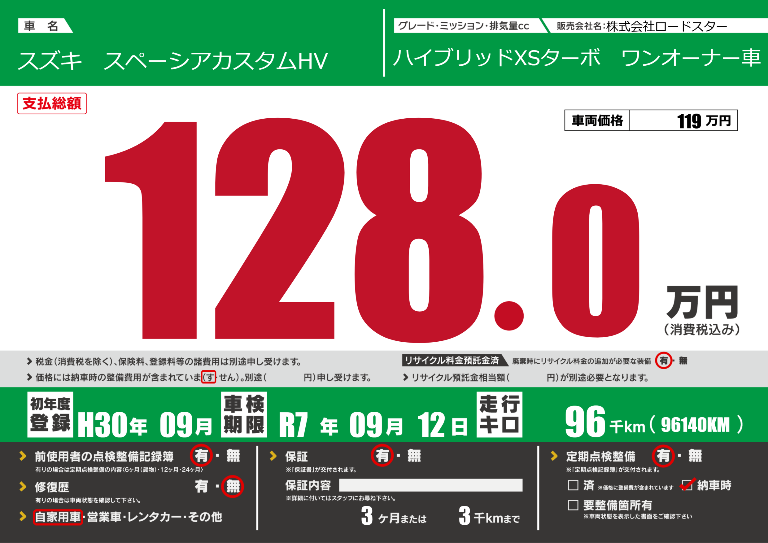 あり | 車検制限 | R7年09月12月 |