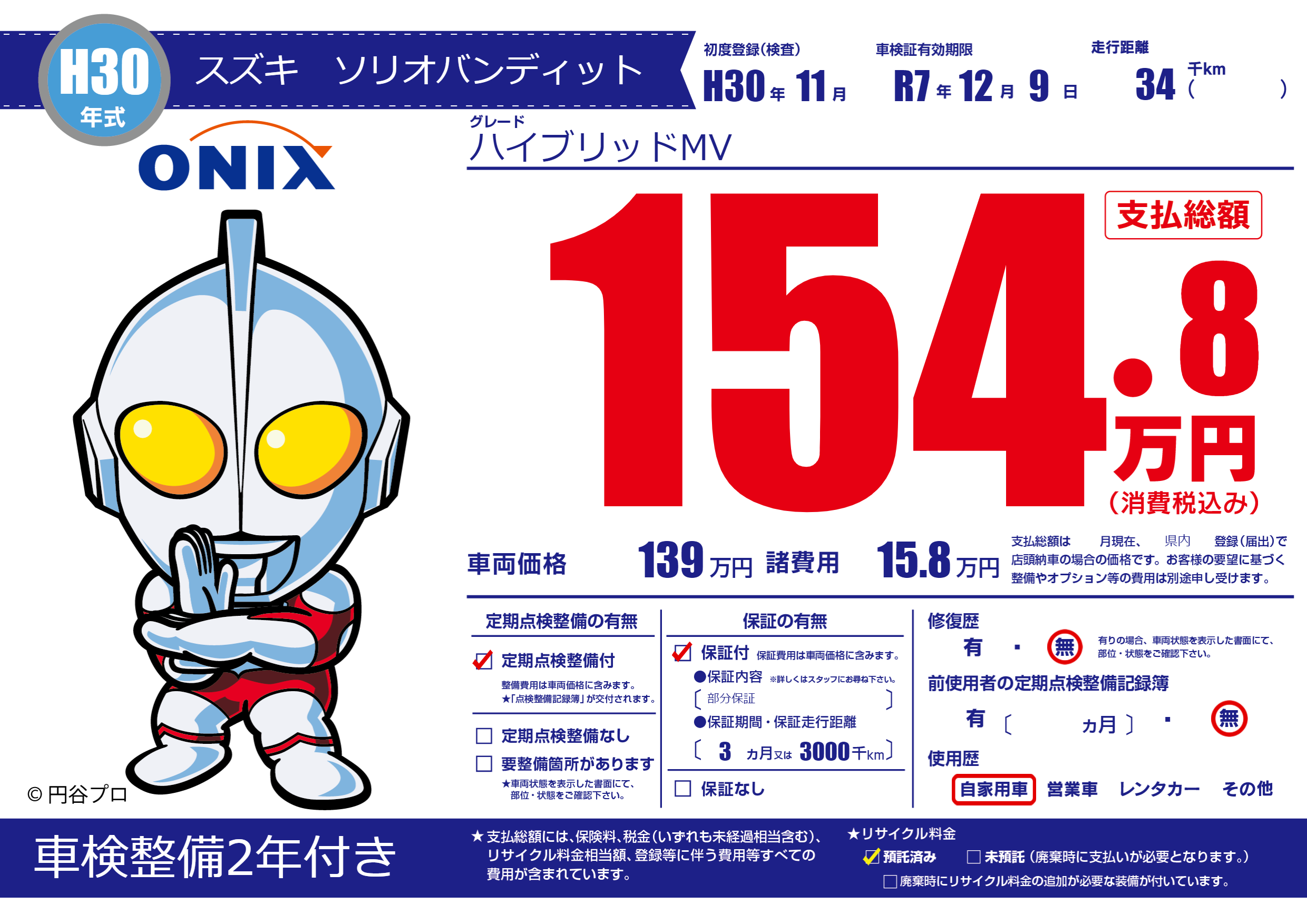 | 車名 | スズキ ソリオバンディット | グレード ミッション 排気量 |