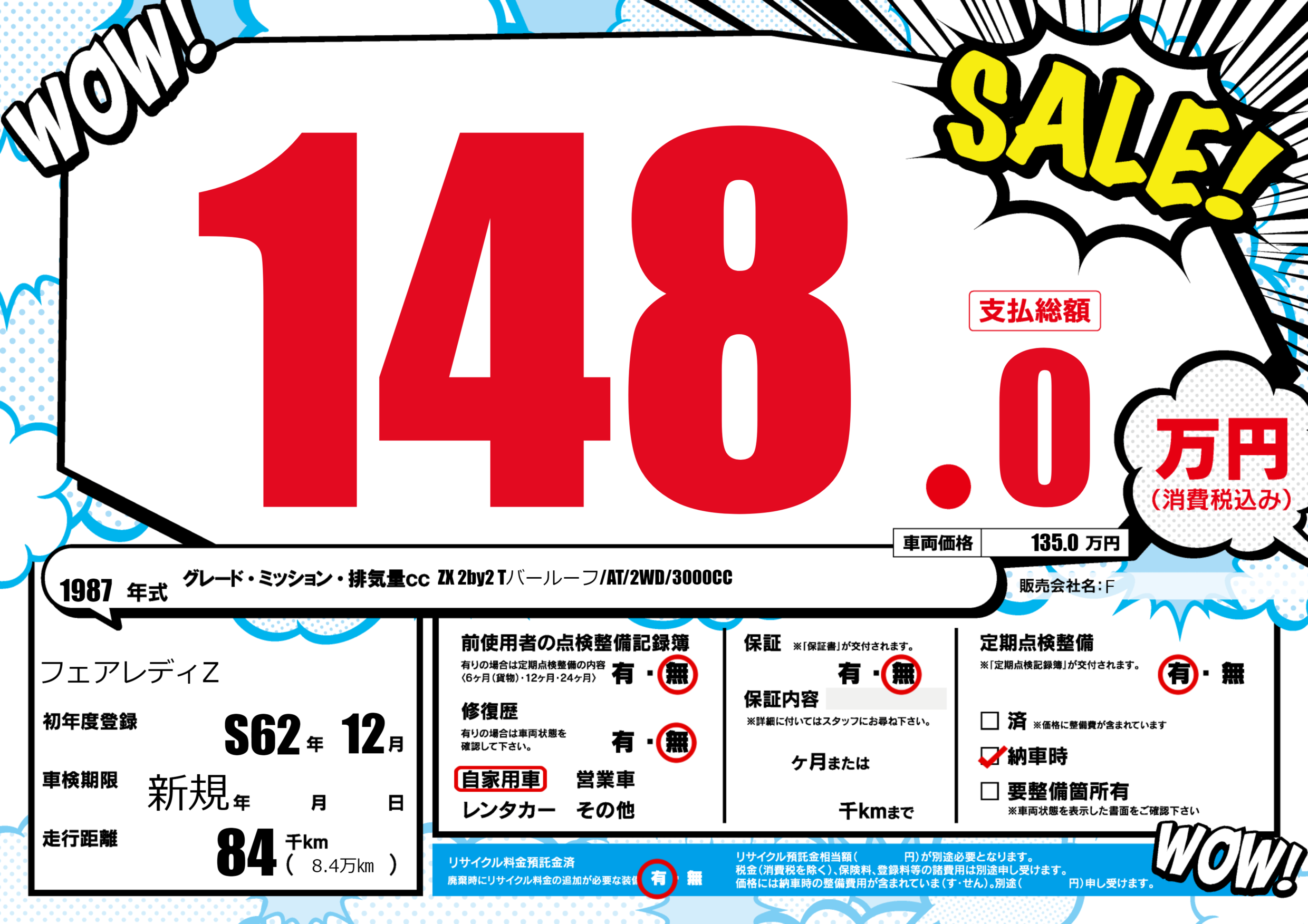 | 走行キロ | 8.4万km | 初年度登録 | S62年12月 |