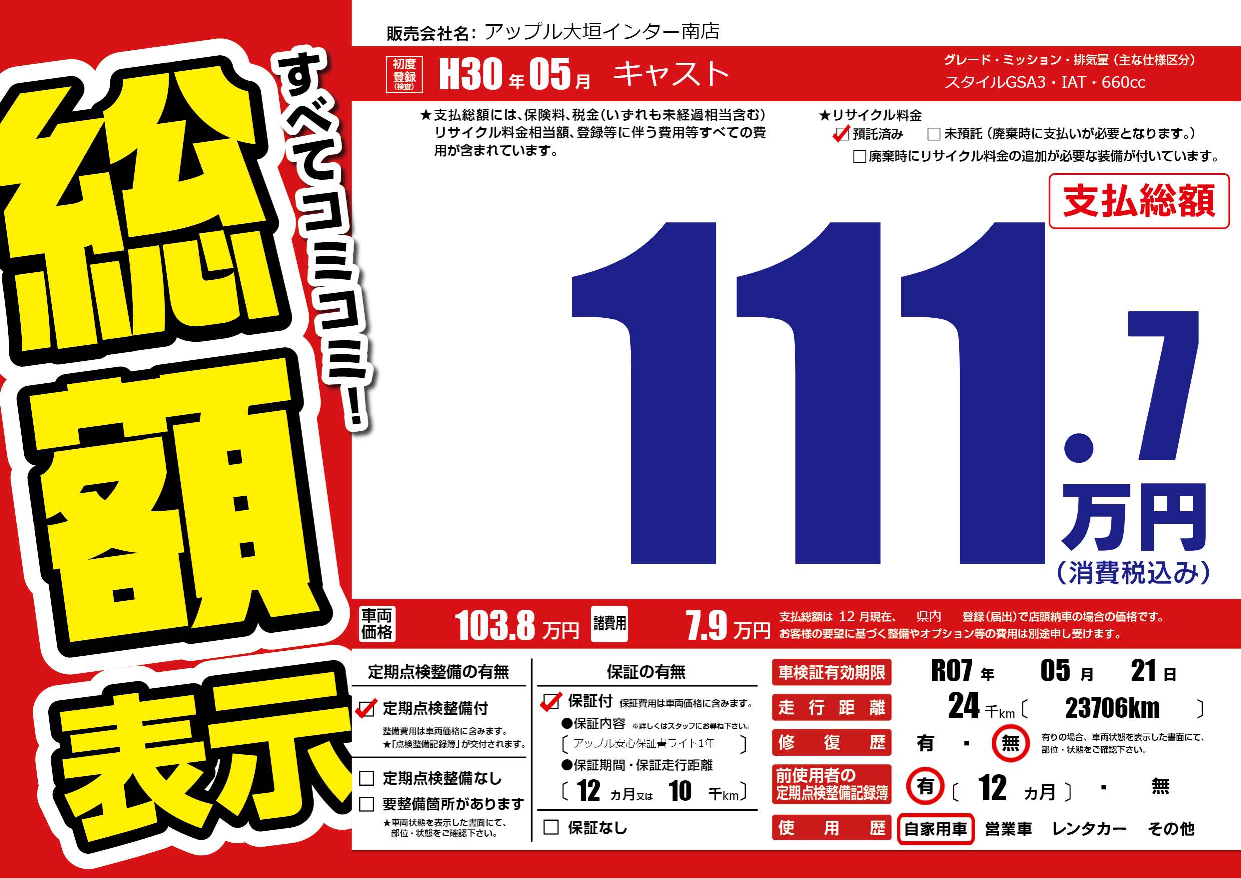 なし | 車検制限 | R07年05月21月 |