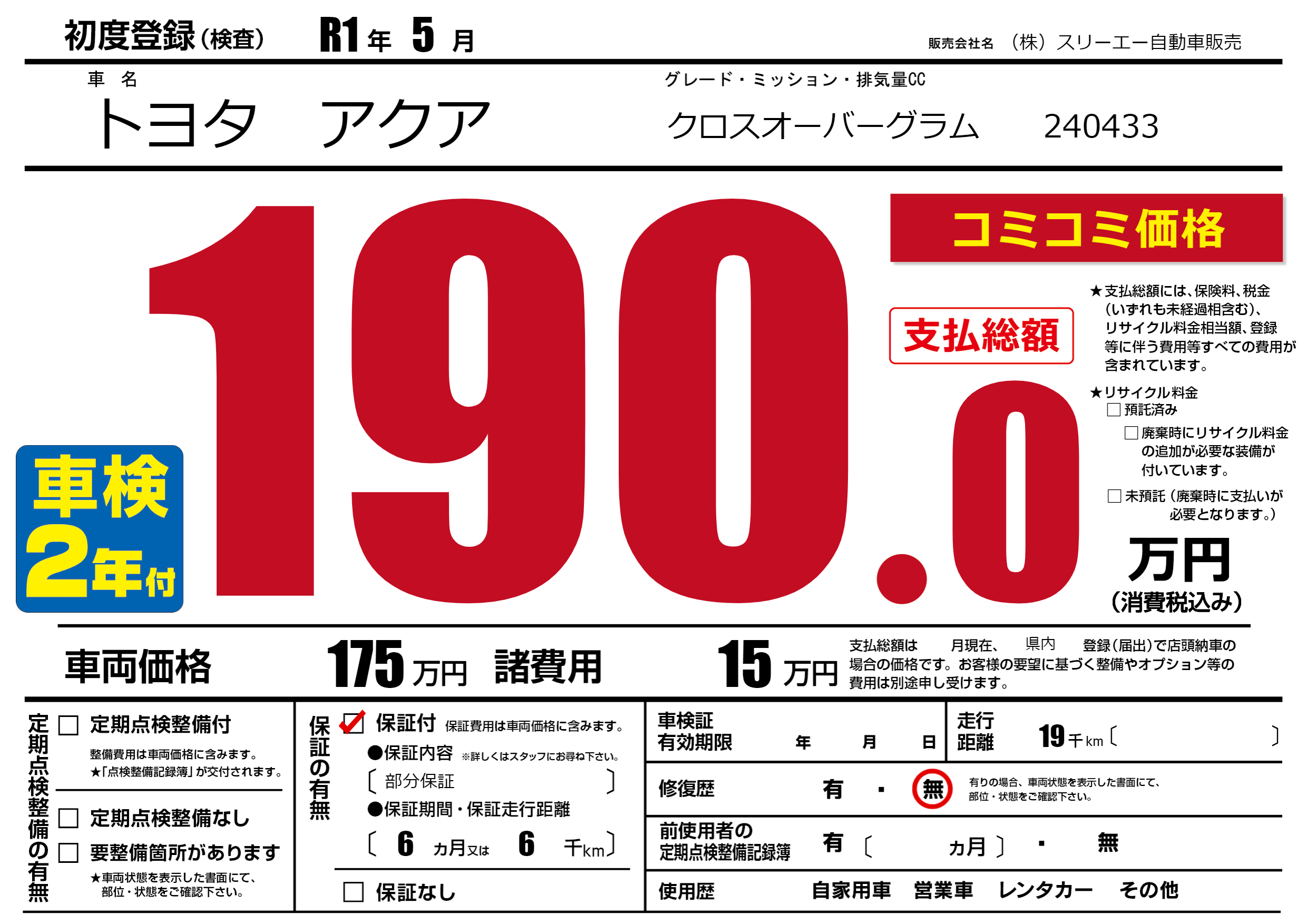 保証付き 保証内容(部分保証) 6ヶ月または(6)千kmまで |