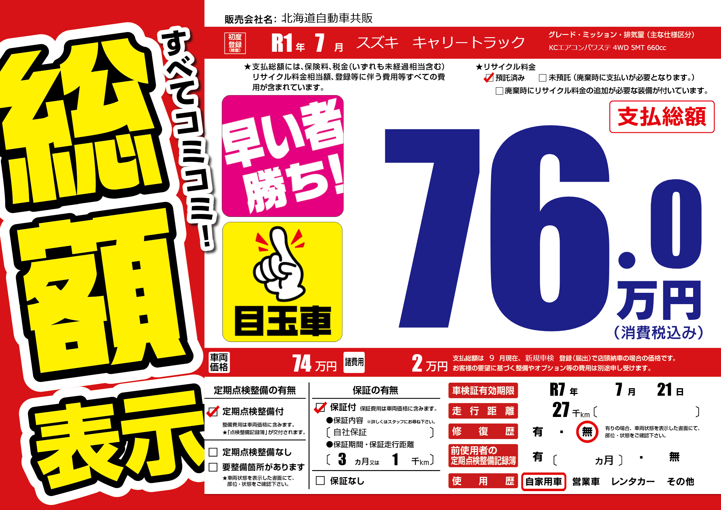 | 車検制限 | R7年 7月 21日 | ||