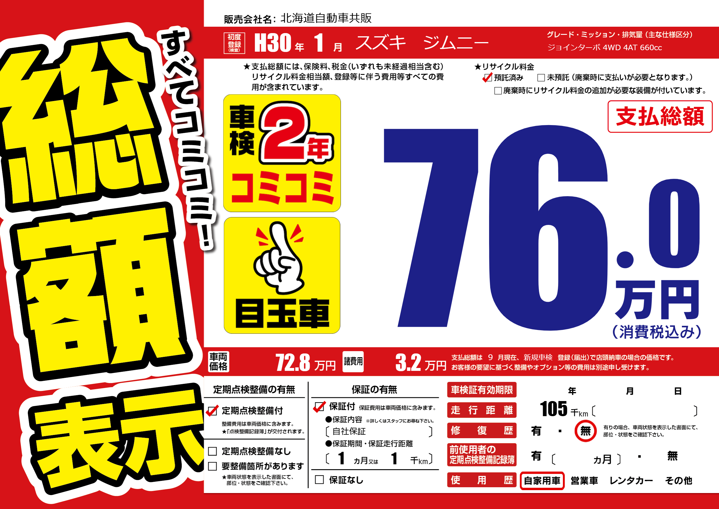 | 初年度登録 | H30年1月 | ||