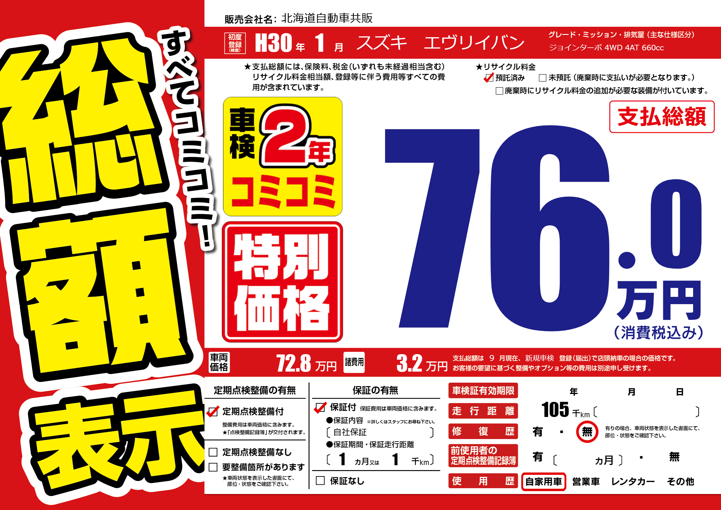 | 車名 | スズキ エヴリイバン | グレード ミッション 排気量 |