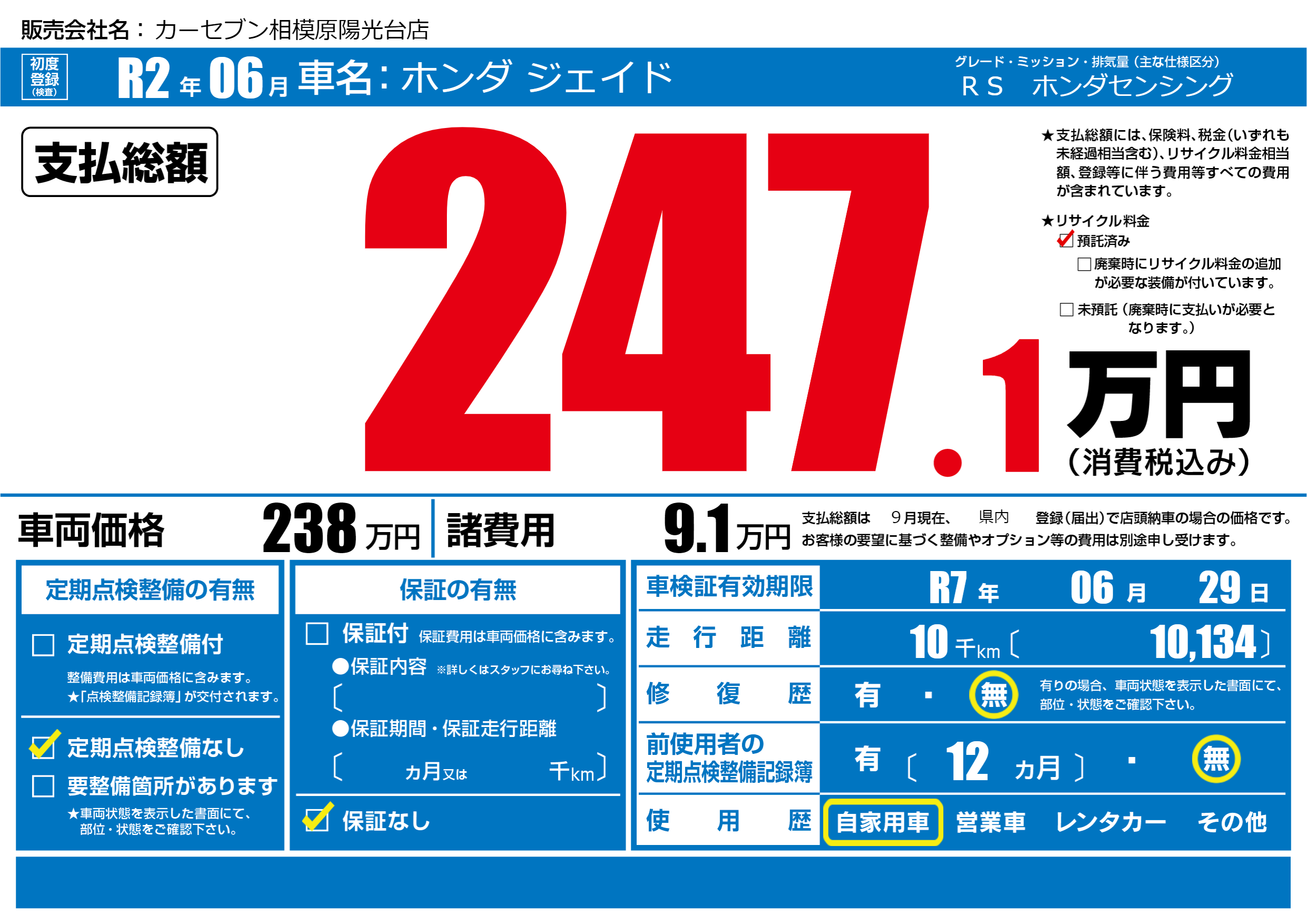 なし | 車検制限 | R7年06月29月 |