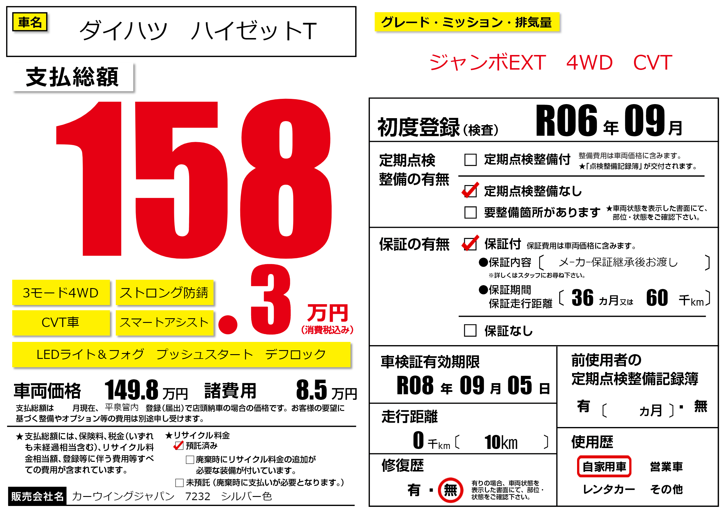 | 走行キロ | - | 初年度登録 | R06年09月 |