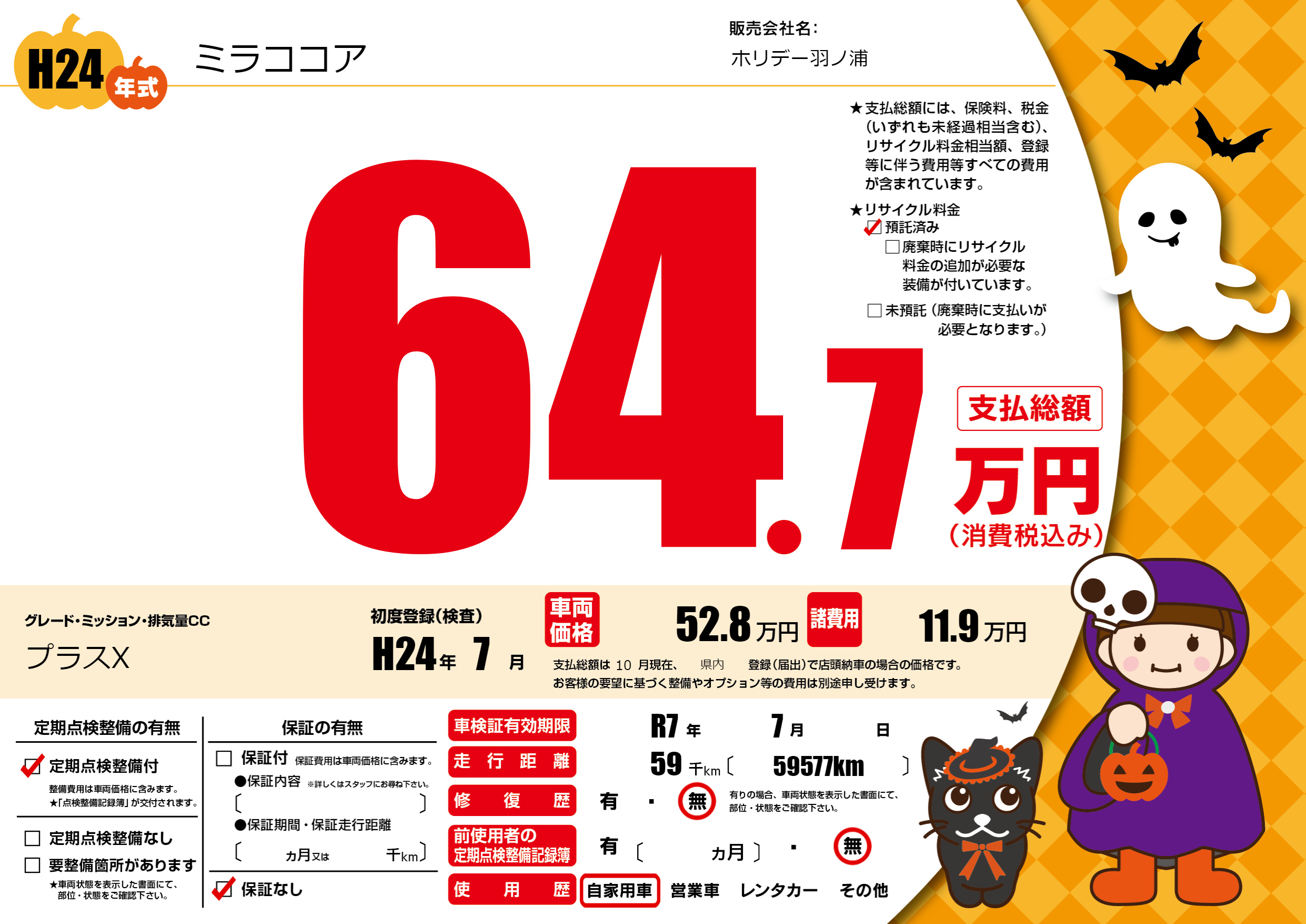 | 車検制限 | R7年 7月 - 日 | ||