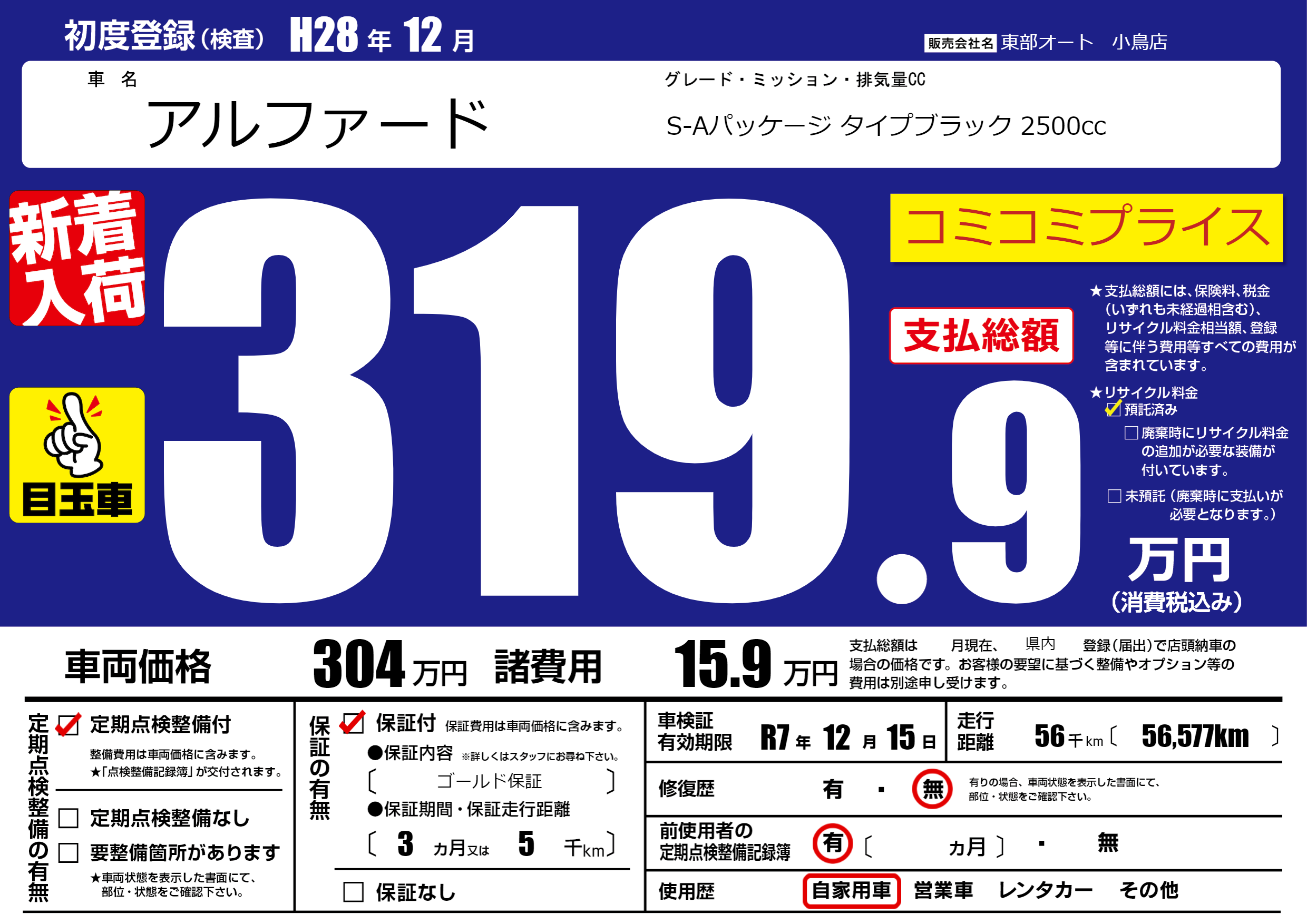 保証付き 保証内容( ゴールド保証) 3ヶ月または5千km |