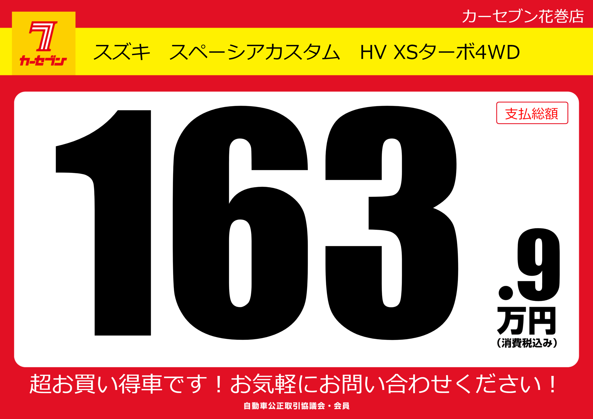 | 車名 | スズキ スペーシアカスタム HV XSターボ4WD | グレード ミッション 排気量 |