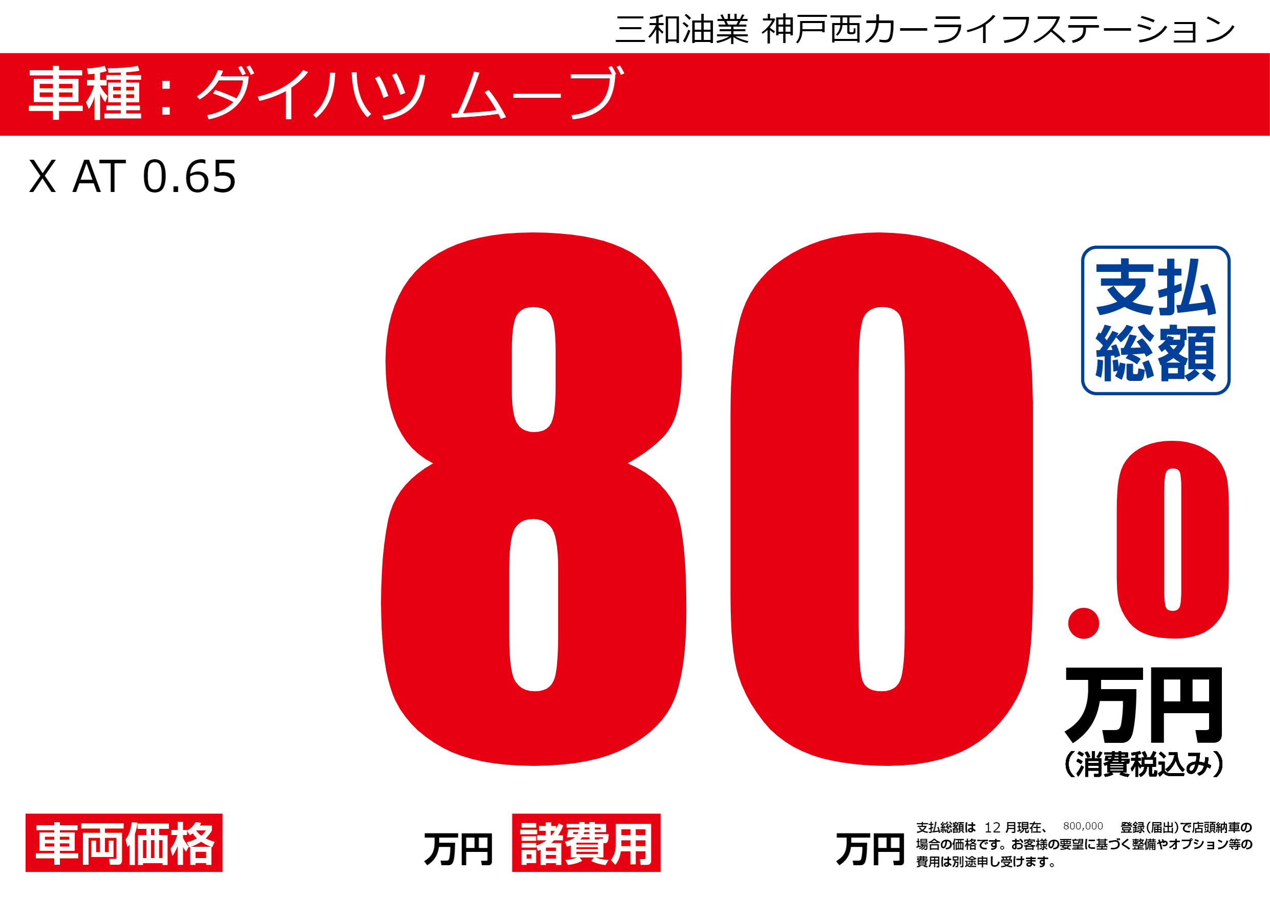 | 車名 | ダイハツ ムーブ | グレード ミッション 排気量 |