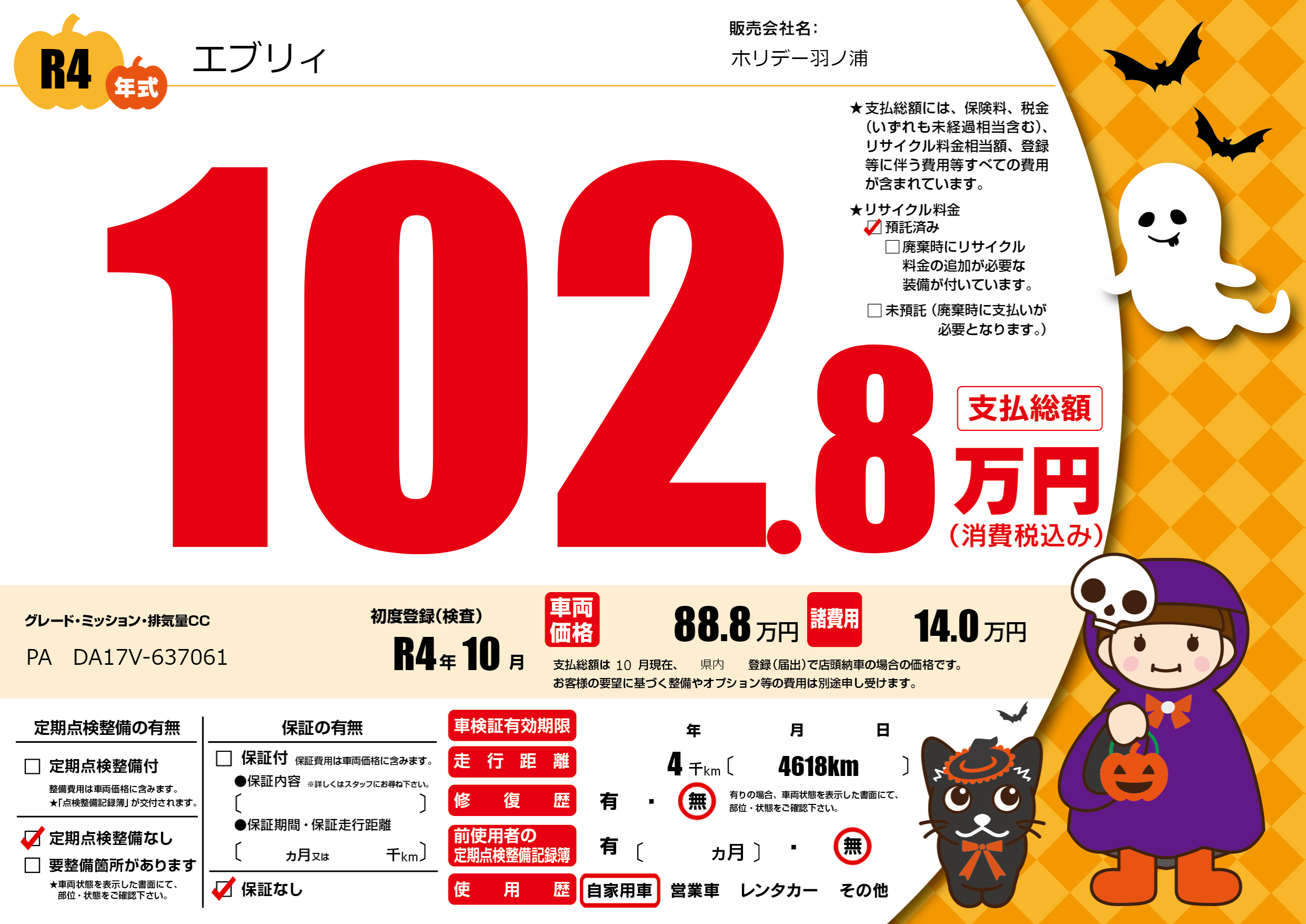 | 車名 | エブリィ | グレード ミッション 排気量 |