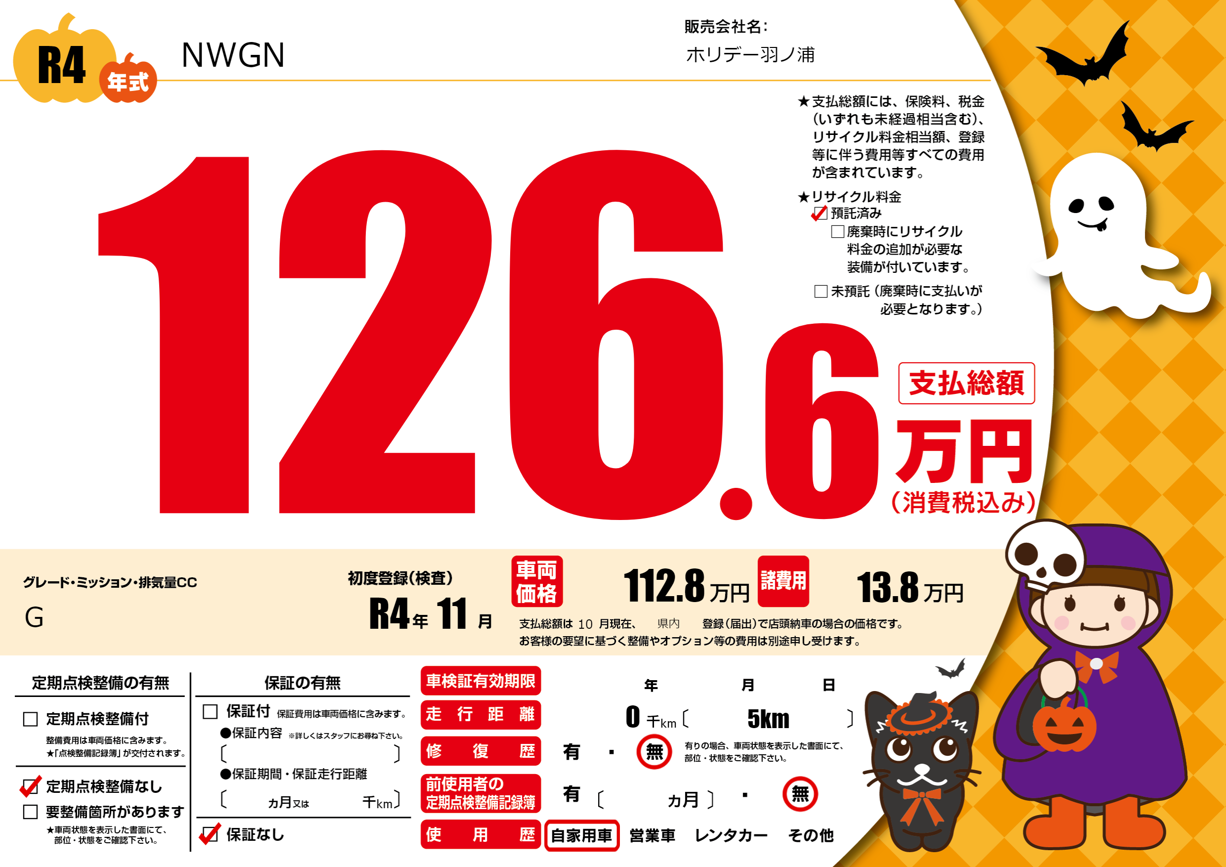 | 車名 | NWGN | グレード ミッション 排気量 |