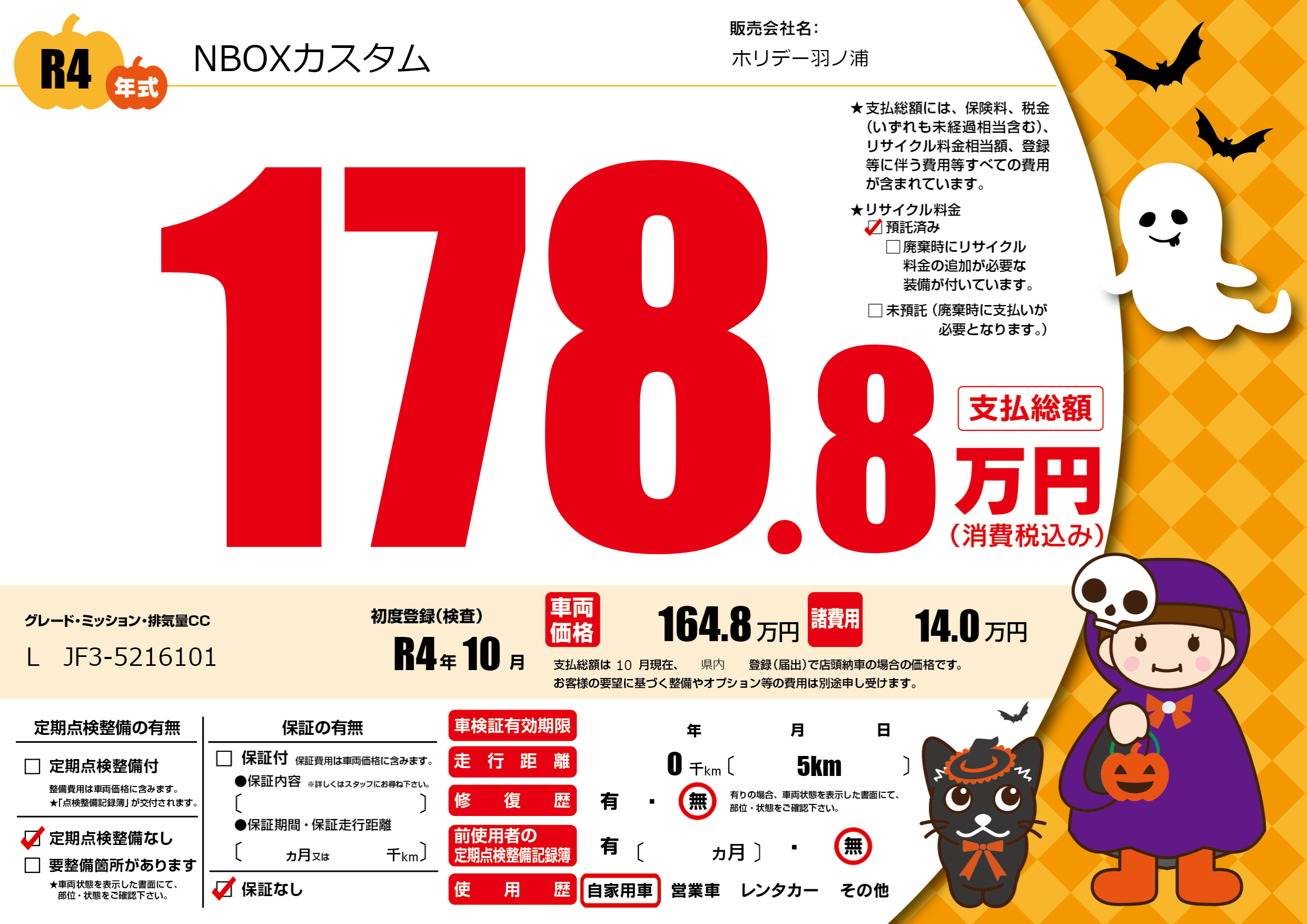 | 走行キロ | - | 初年度登録 | R4年10月 |