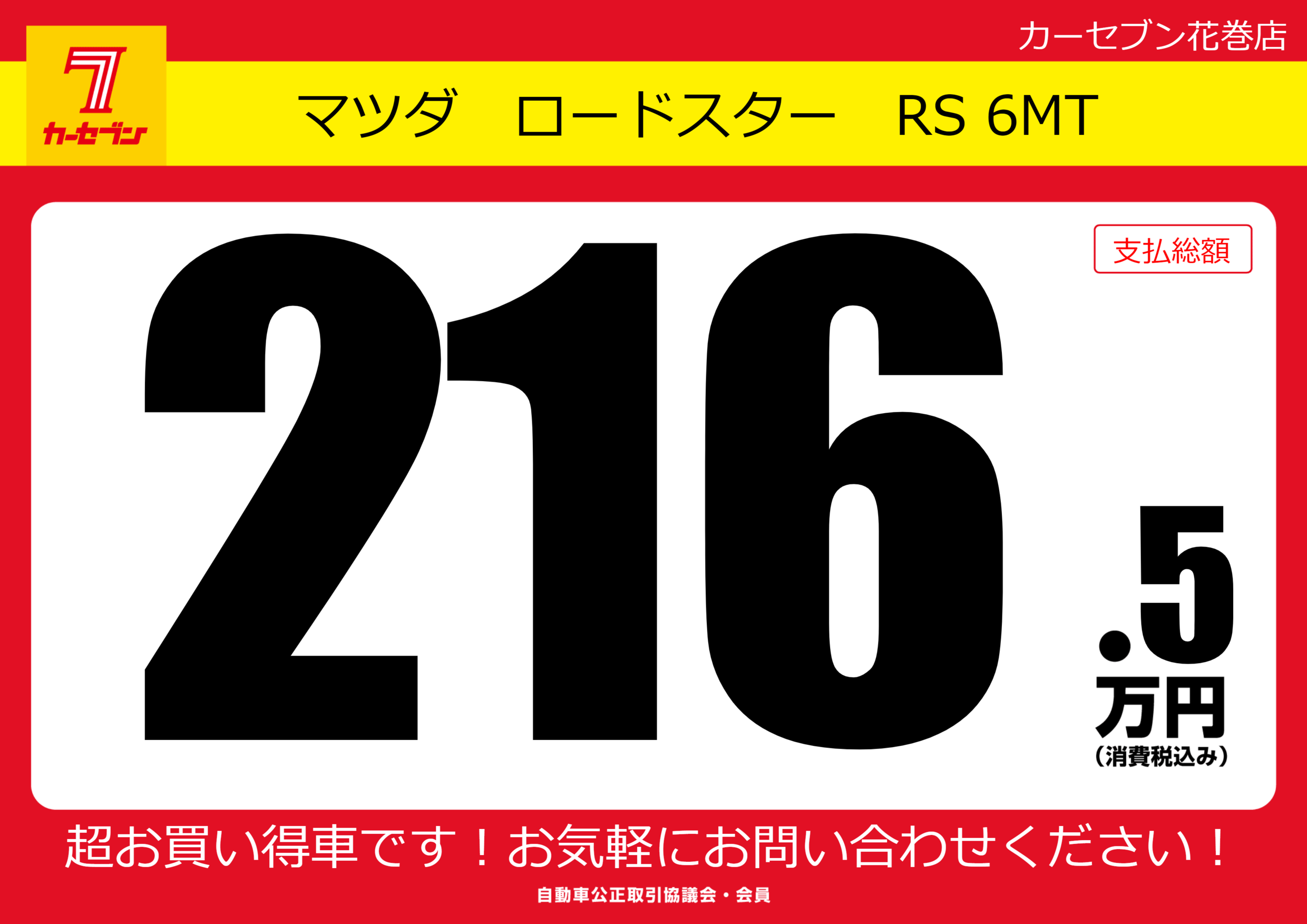 | 車名 | マツダ ロードスター RS 6MT | グレード ミッション 排気量 |