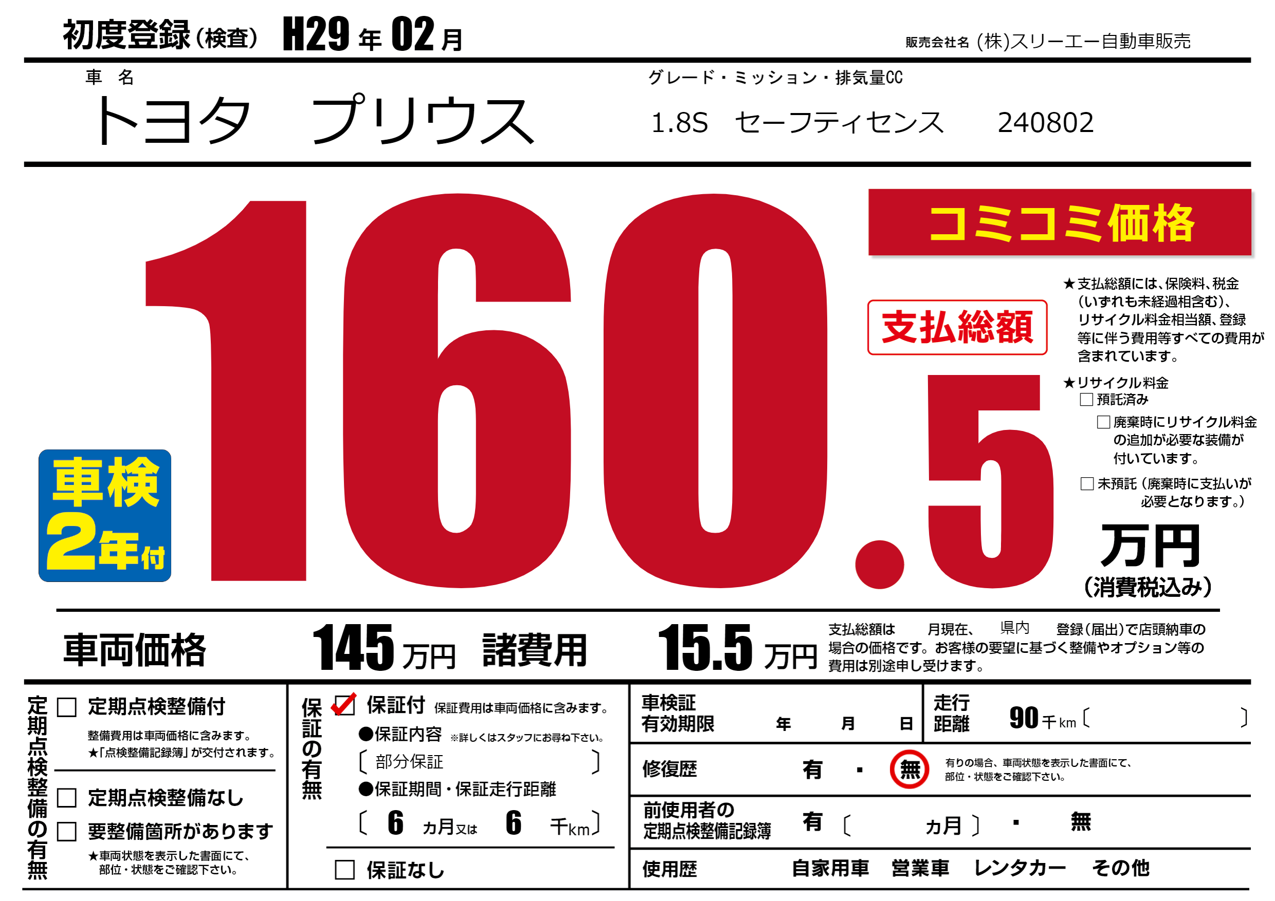 保証付き 保証内容(部分保証) 6ヶ月または(6)千kmまで |