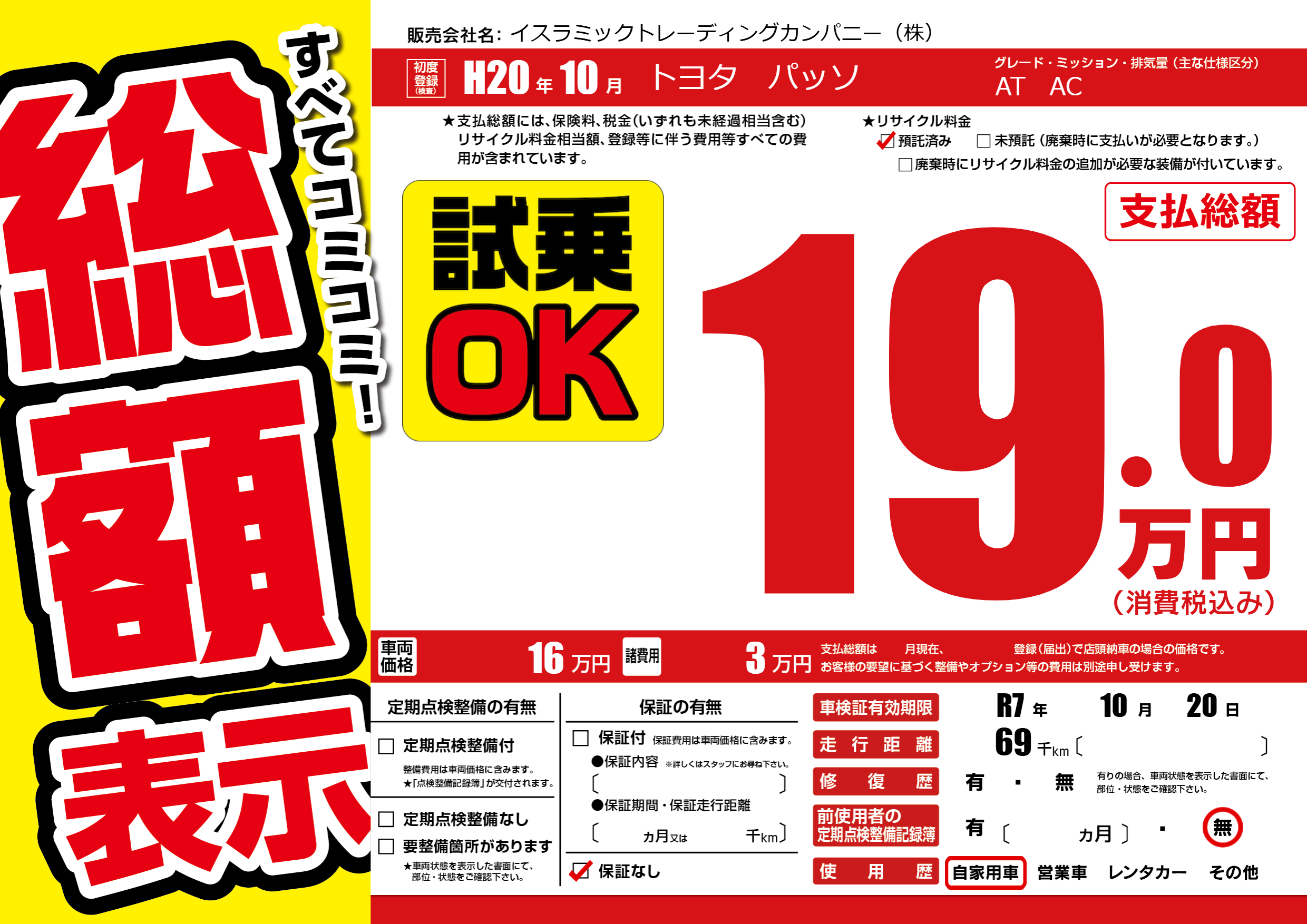 なし | 車検制限 | R7年10月20月 |