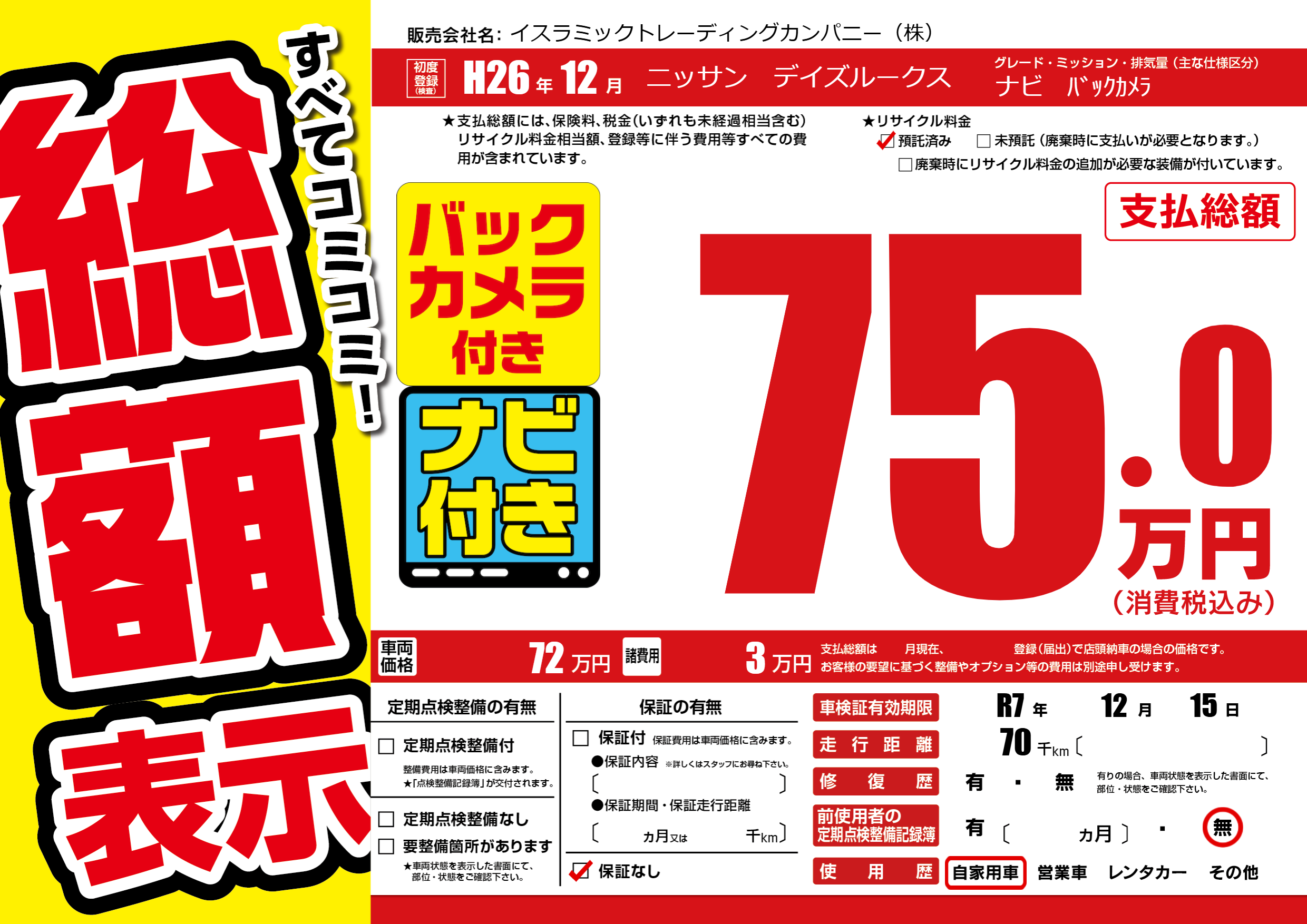 イスラミックトレーディングカンパニー(株)の展示車をすべて見る