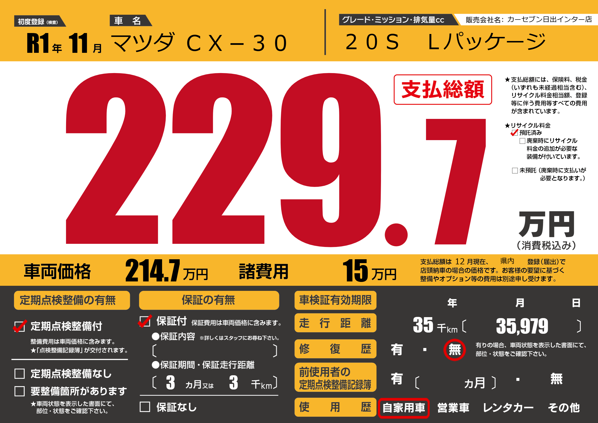 | 走行キロ | 3.5万km | ||
