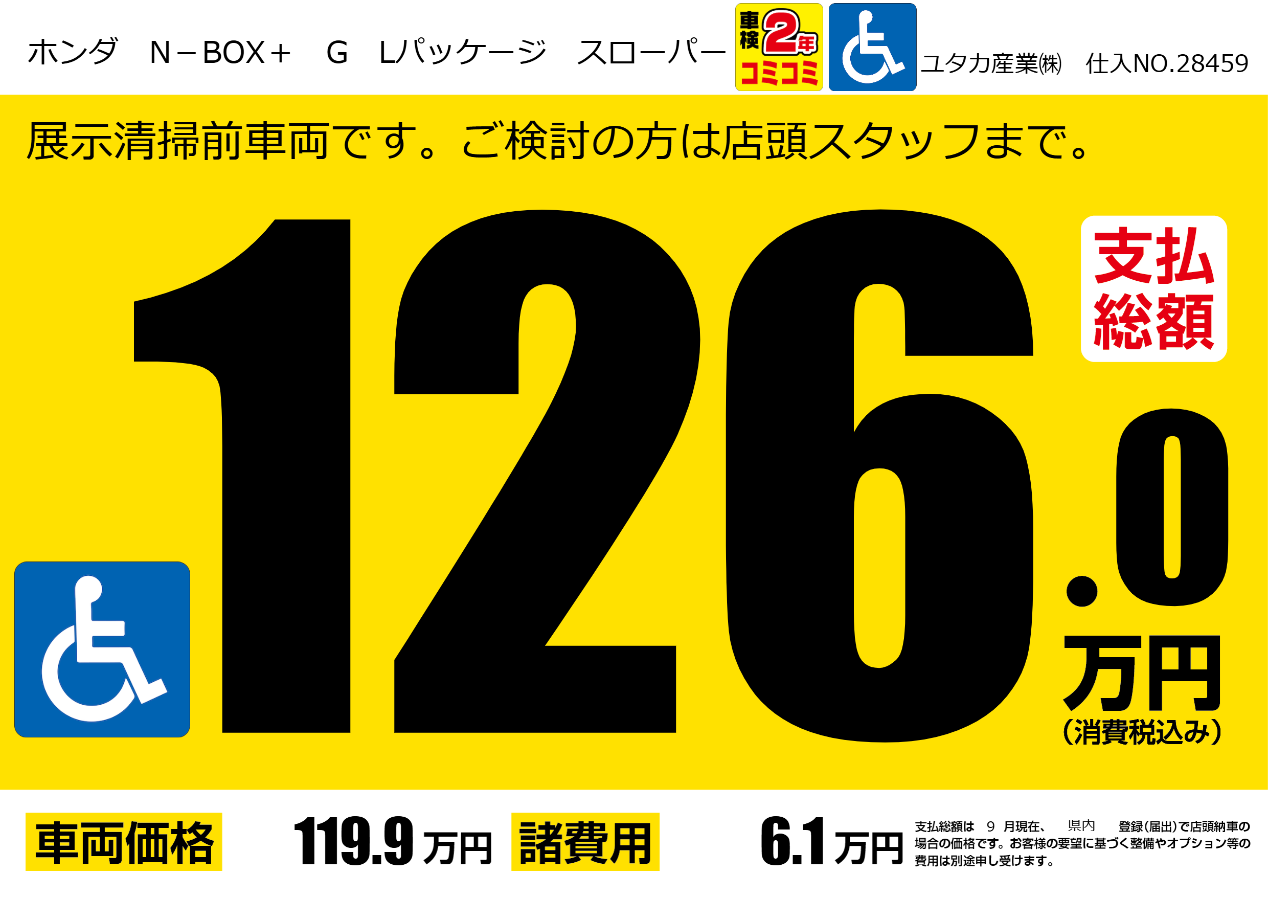 | 車名 | ホンダ N-BOX+ G Lパッケージ スローパー | グレード ミッション 排気量 |