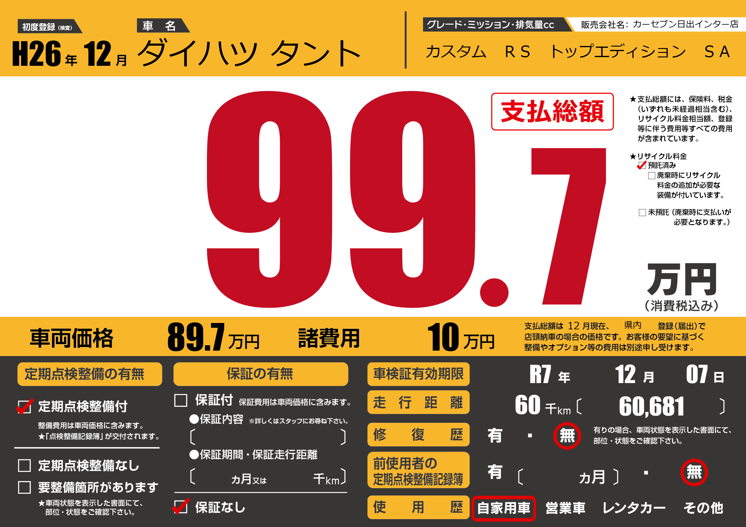 なし | 車検制限 | R7年12月07月 |