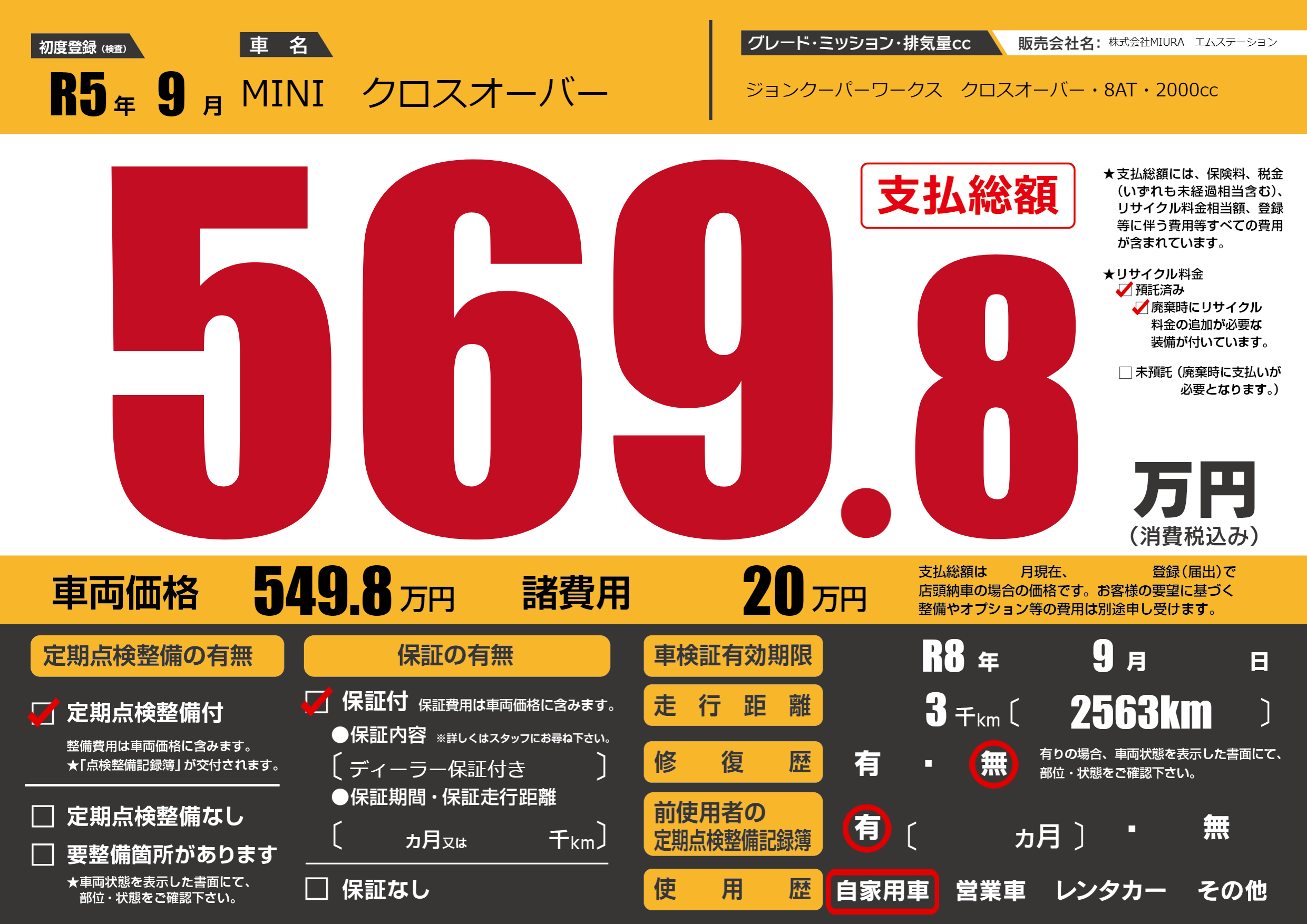 なし | 車検制限 | R8年9月---月 |