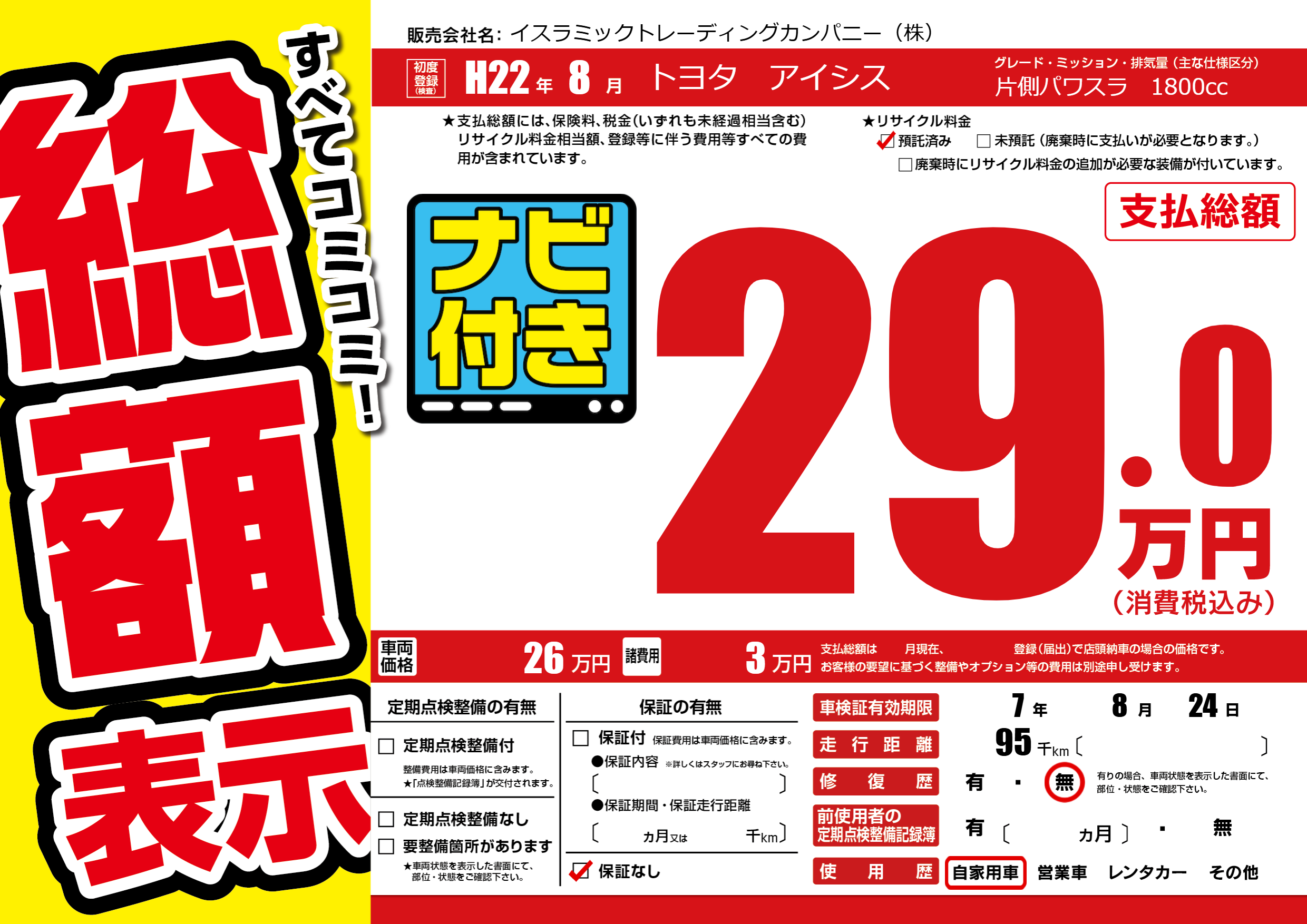 | 車検制限 | 7年 8月 24日 | ||