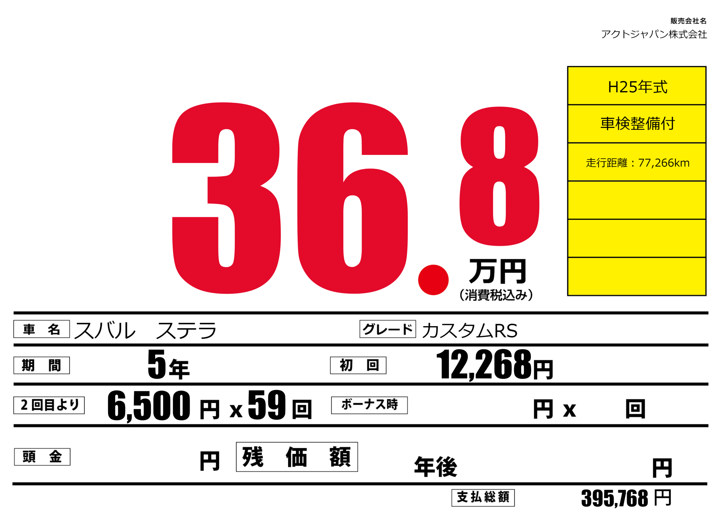 | 車検制限 | - 年 - 月 - 日 | ||