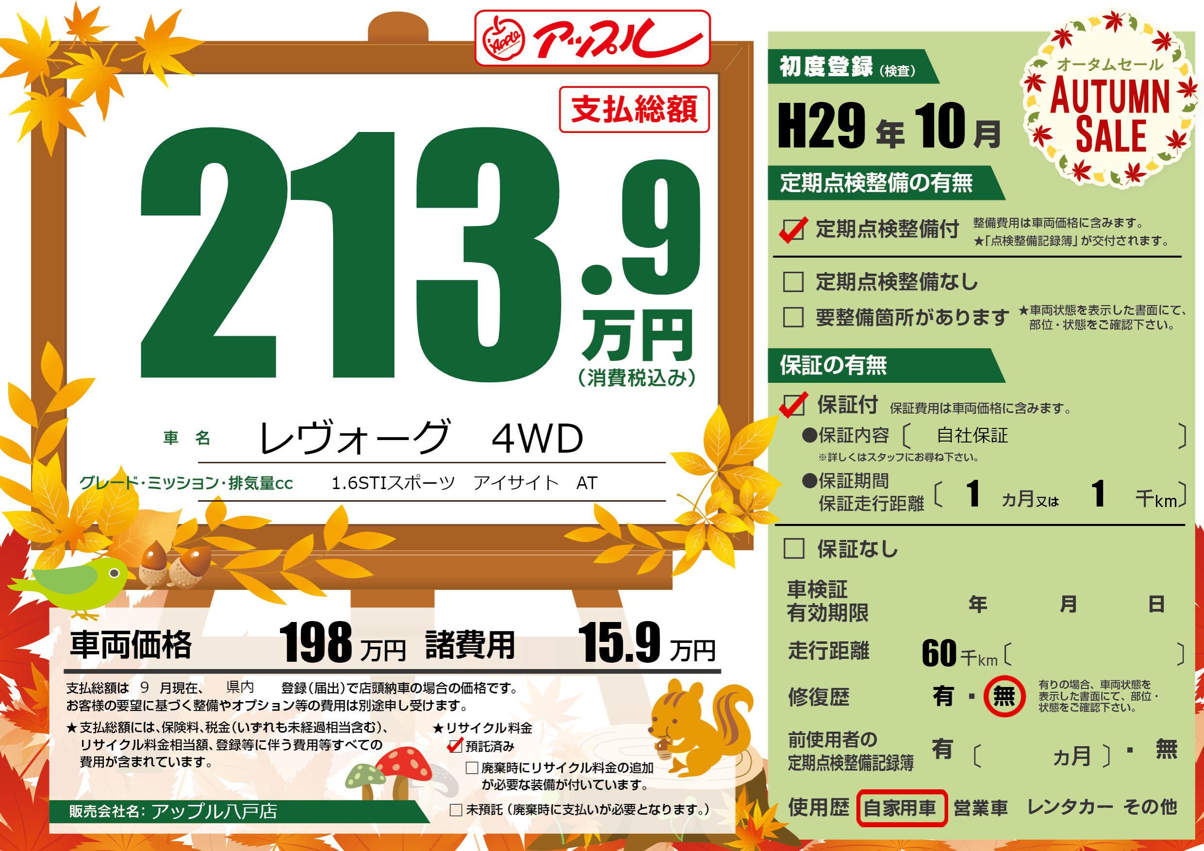 | 車名 | レヴォーグ 4WD | グレード ミッション 排気量 |