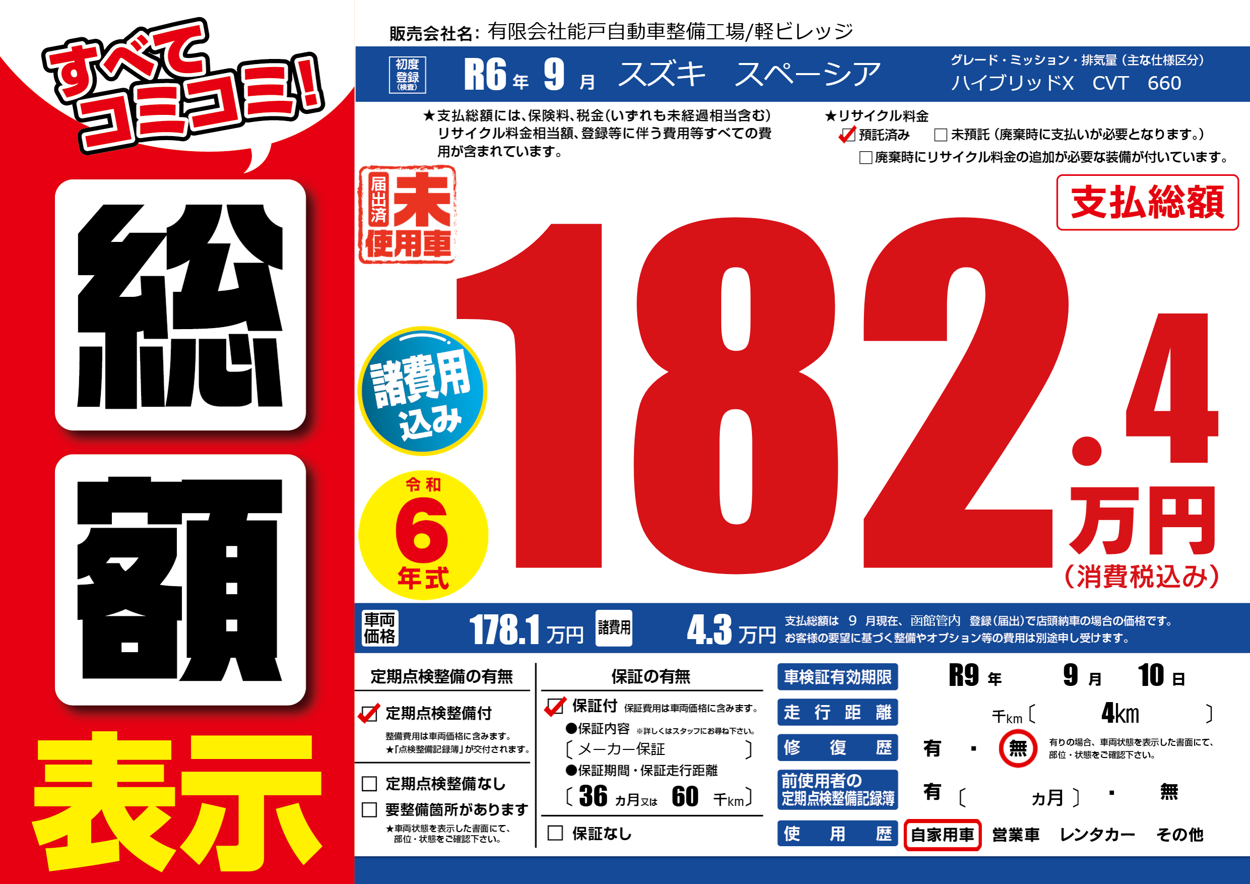 | 走行キロ | - | 初年度登録 | R6年9月 |
