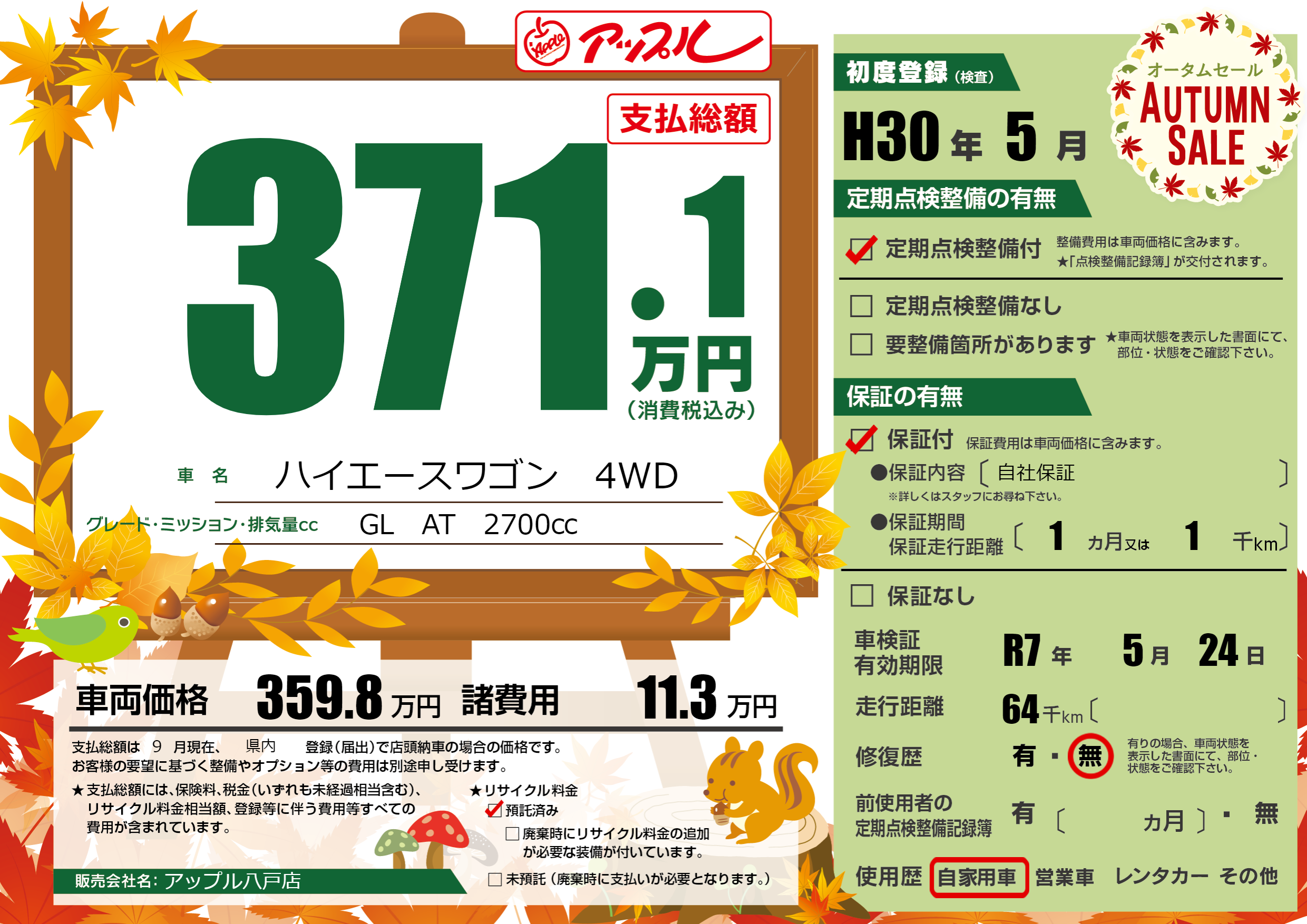 | 車名 | ハイエースワゴン 4WD | グレード ミッション 排気量 |