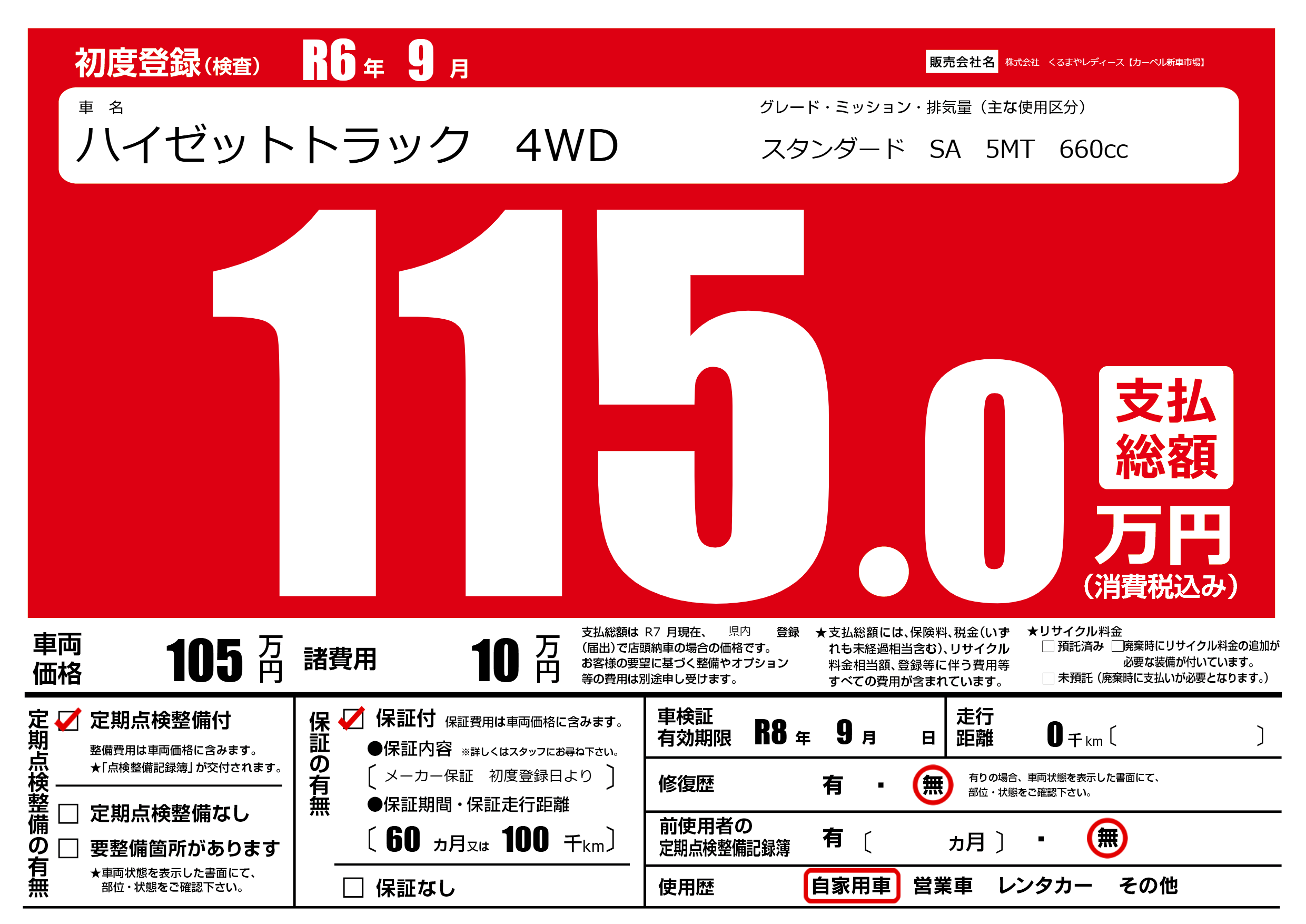 | 走行キロ | - | 初年度登録 | R6年9月 |