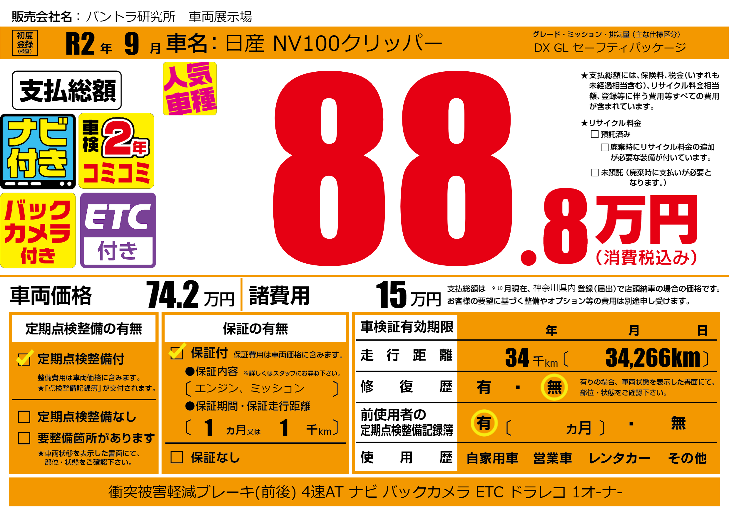 | 走行キロ | 3.4万km | ||