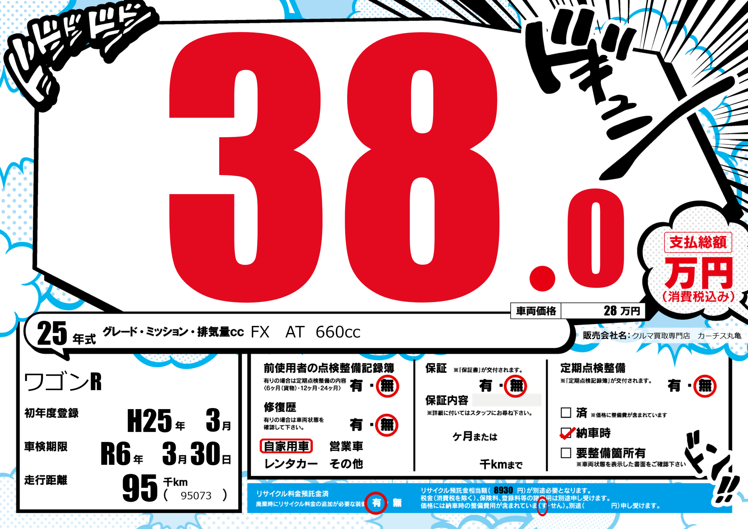 | 車名 | ワゴンR | グレード ミッション 排気量 |