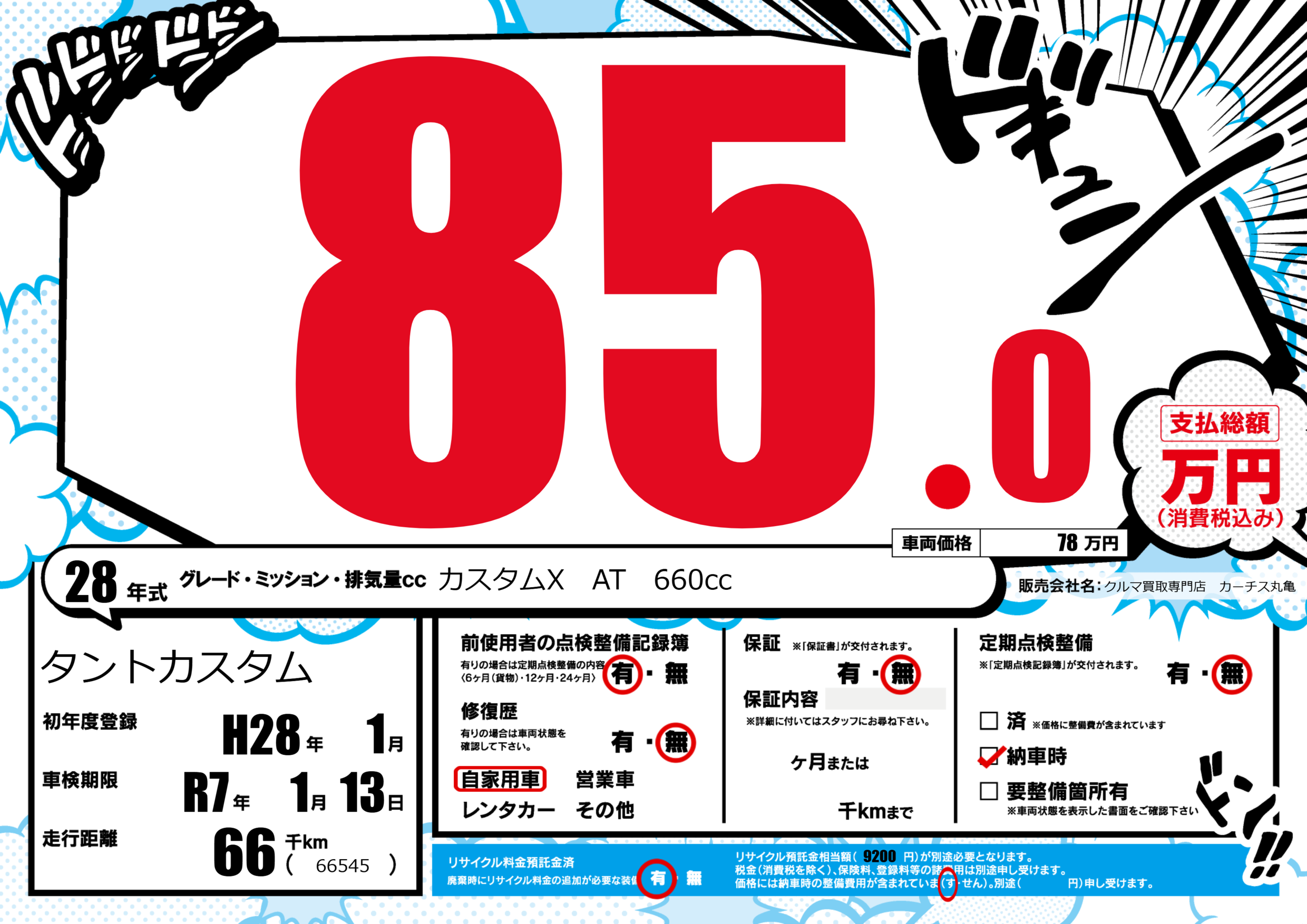 | 走行キロ | 6.6万km | 初年度登録 | H28年1月 |