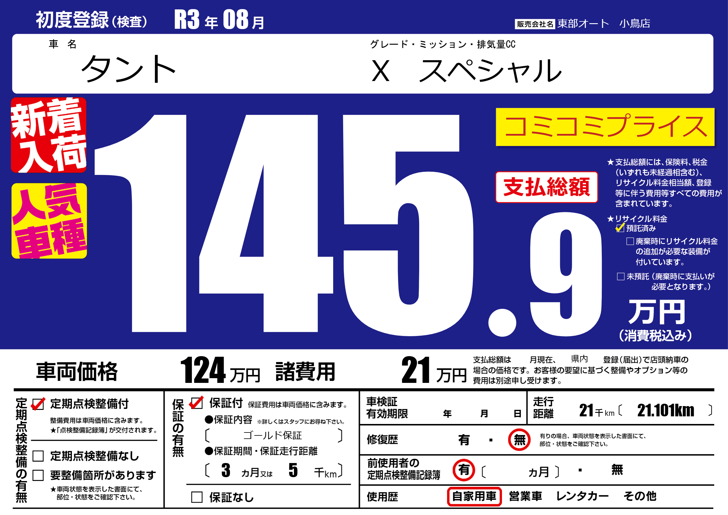 保証付き 保証内容( ゴールド保証) 3ヶ月または5千km |