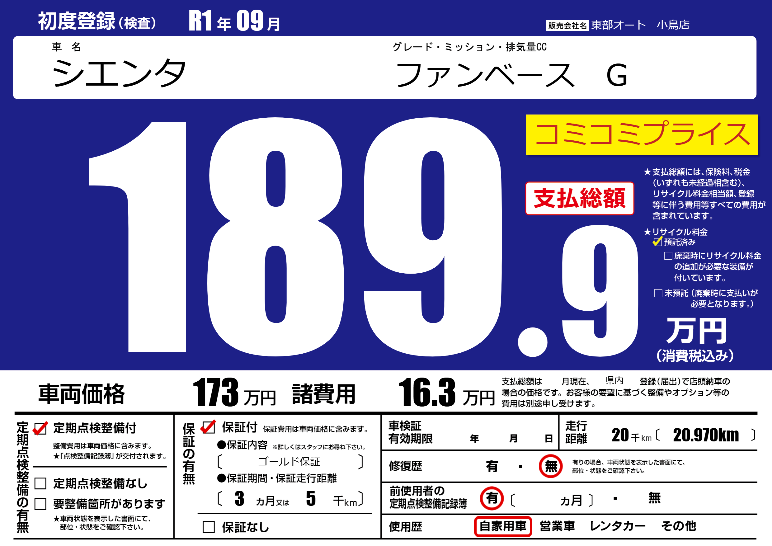 | 定期点検整備 | 定期点検整備あり | ||