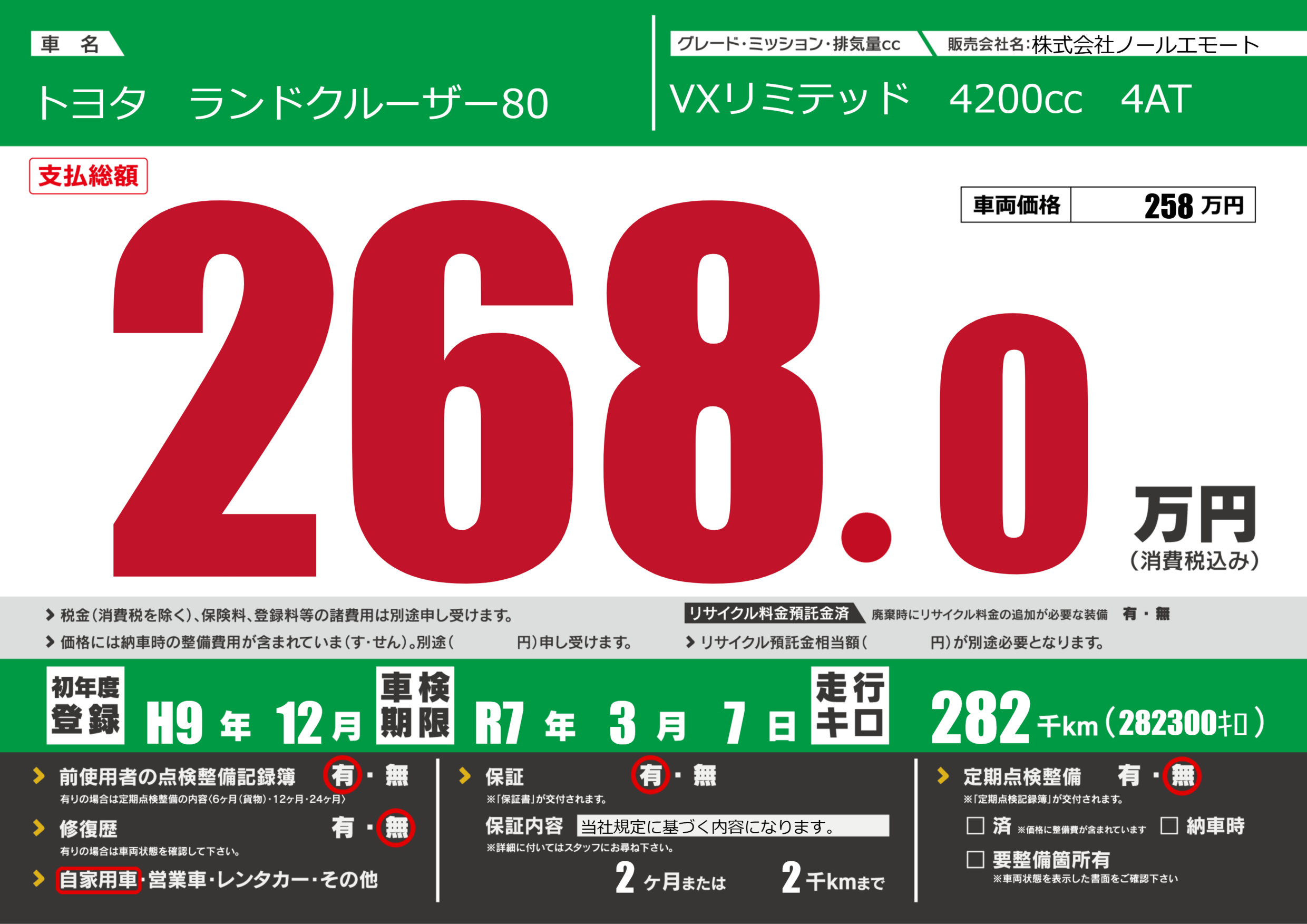 | 車検制限 | R7年 3月 7日 | ||