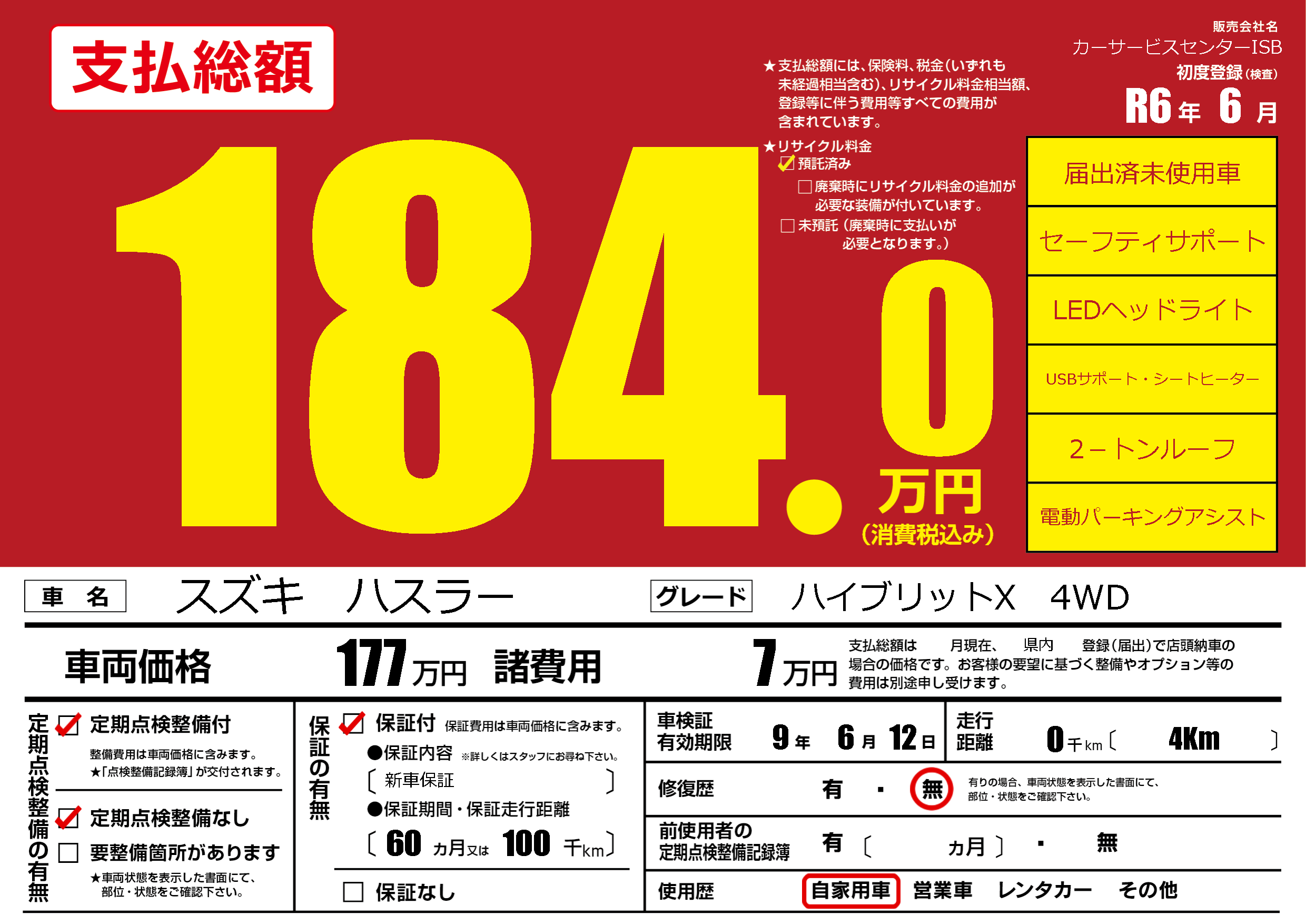 | 走行キロ | - | 初年度登録 | R6年6月 |