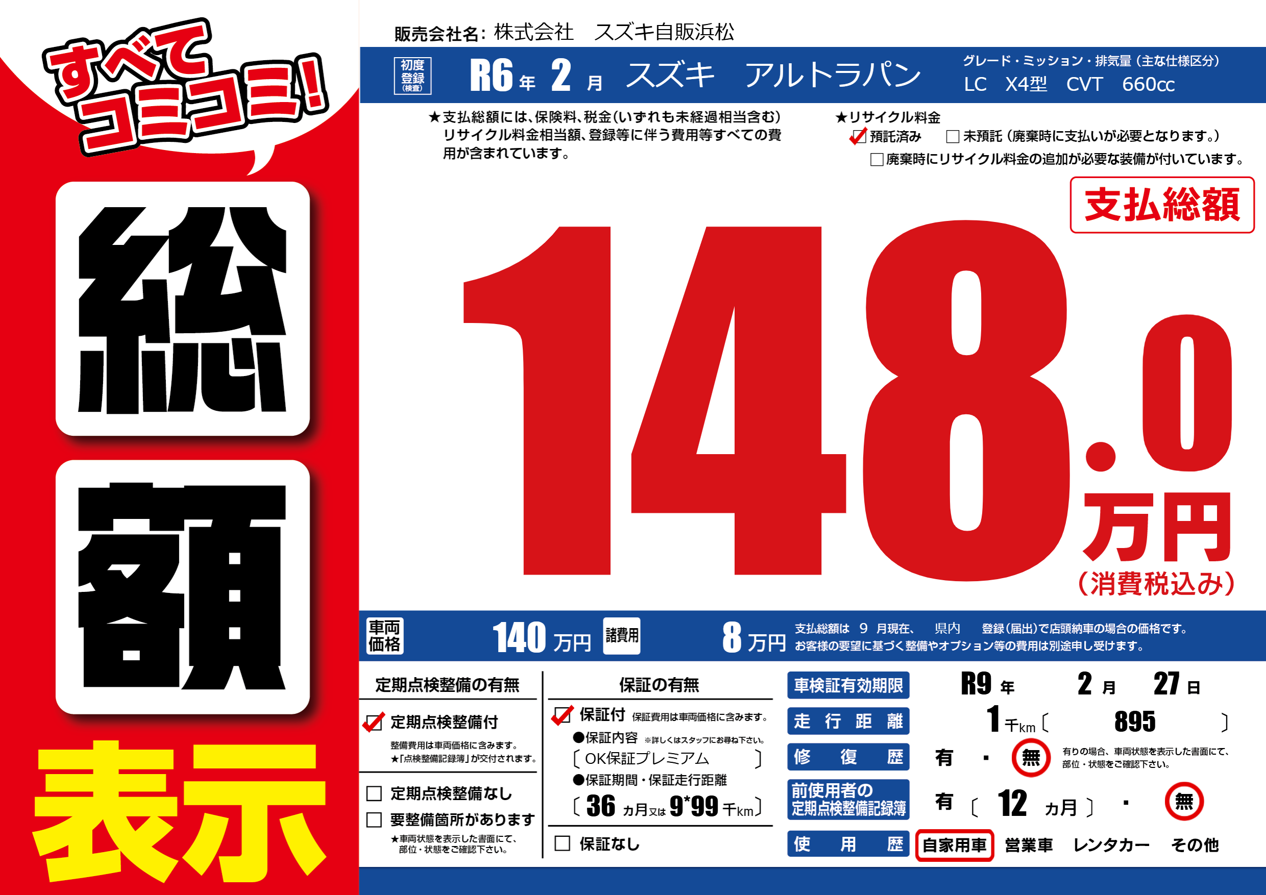 | 車検制限 | R9年 2月 27日 | ||