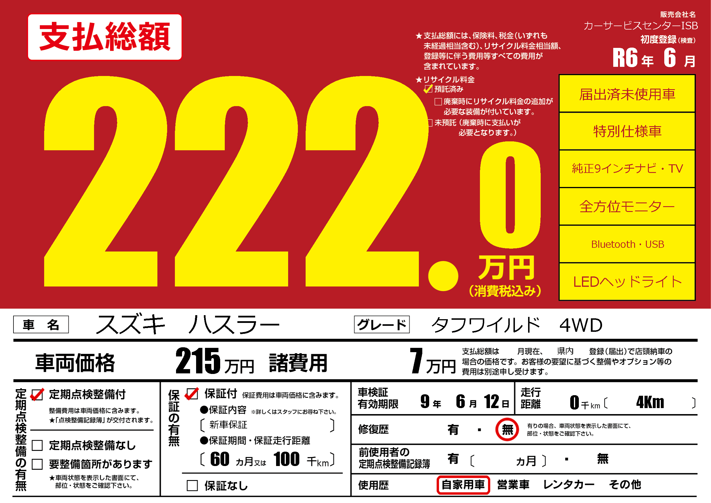 | 走行キロ | - | 初年度登録 | R6年6月 |