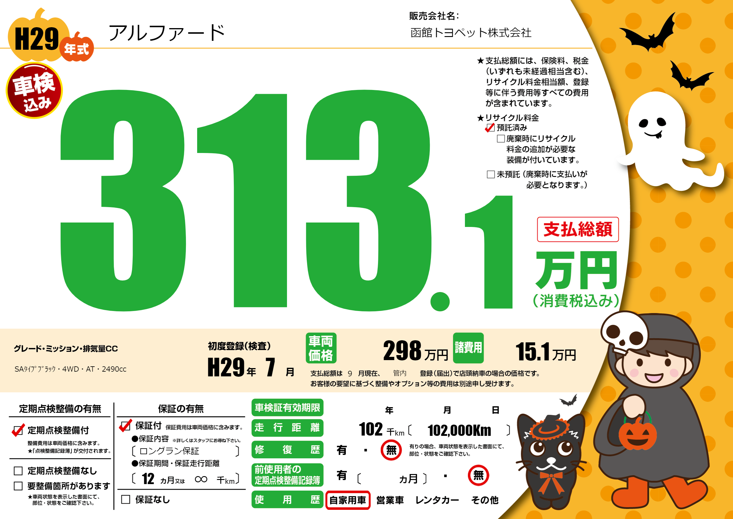 | 走行キロ | 10.2万km | 初年度登録 | H29年7月 |