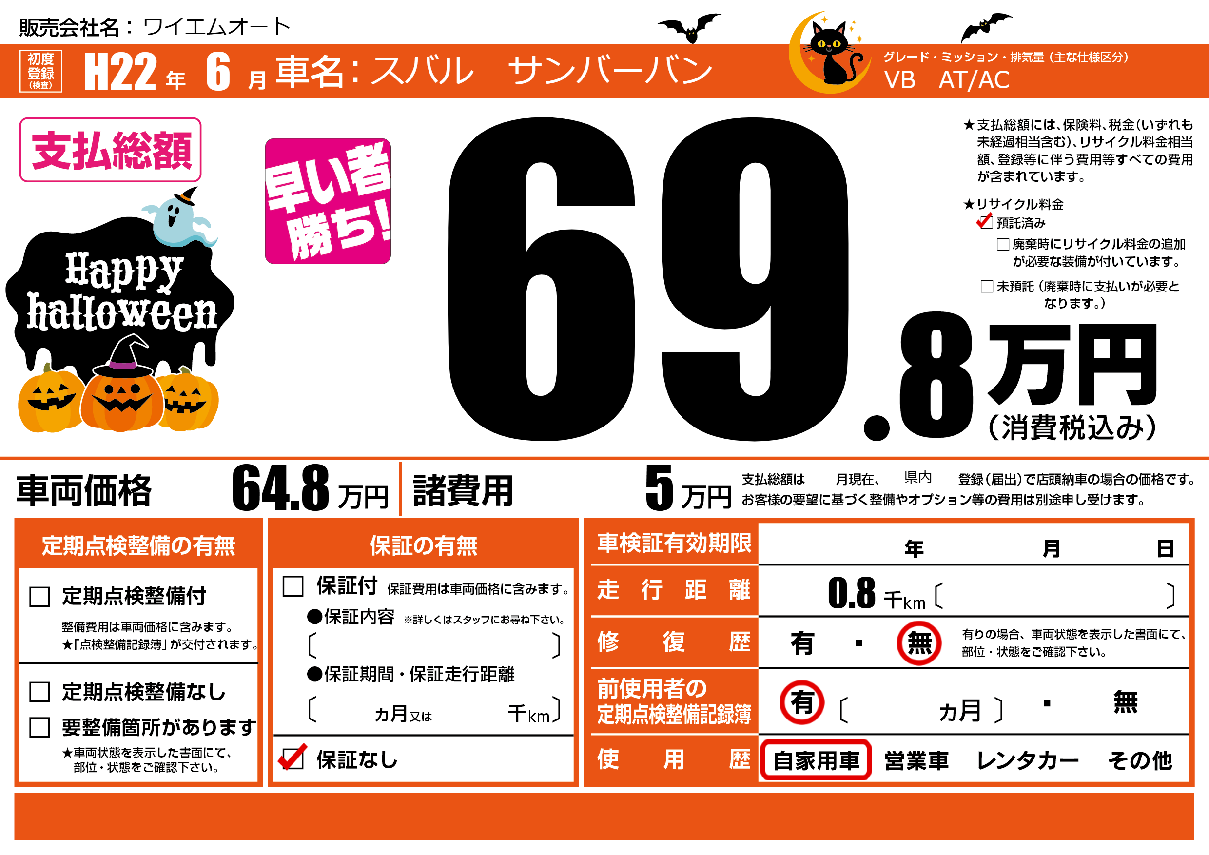 | 走行キロ | - | 初年度登録 | H22年6月 |