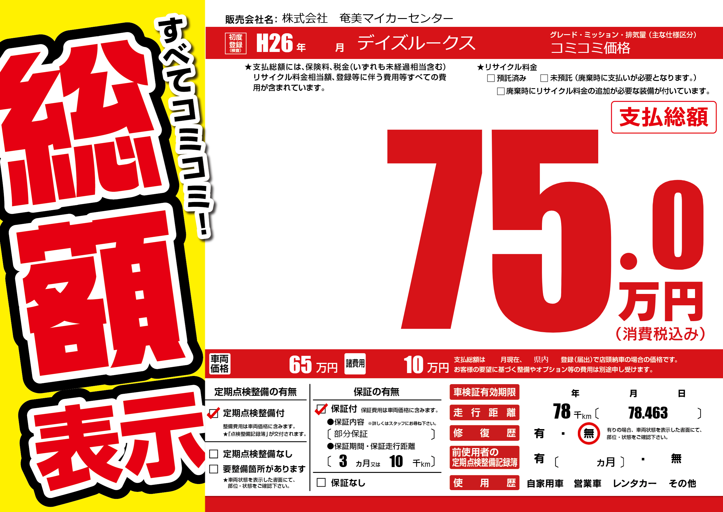 | 走行キロ | 7.8万km | 初年度登録 | H26年---月 |
