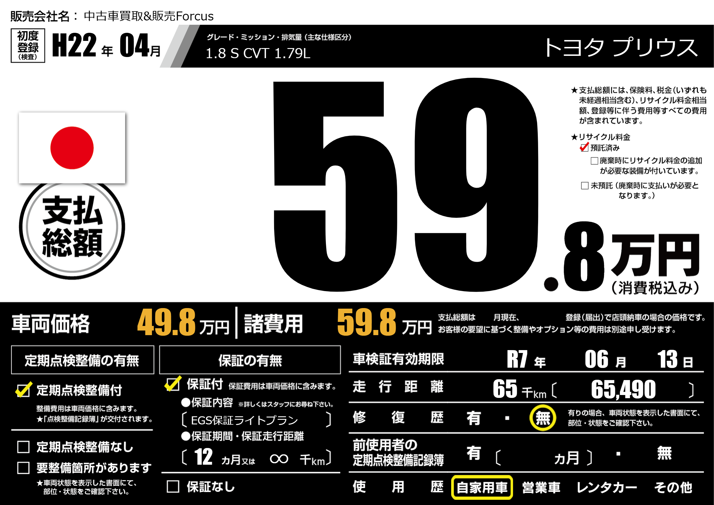 | 車検制限 | R7年 06月 13日 | ||
