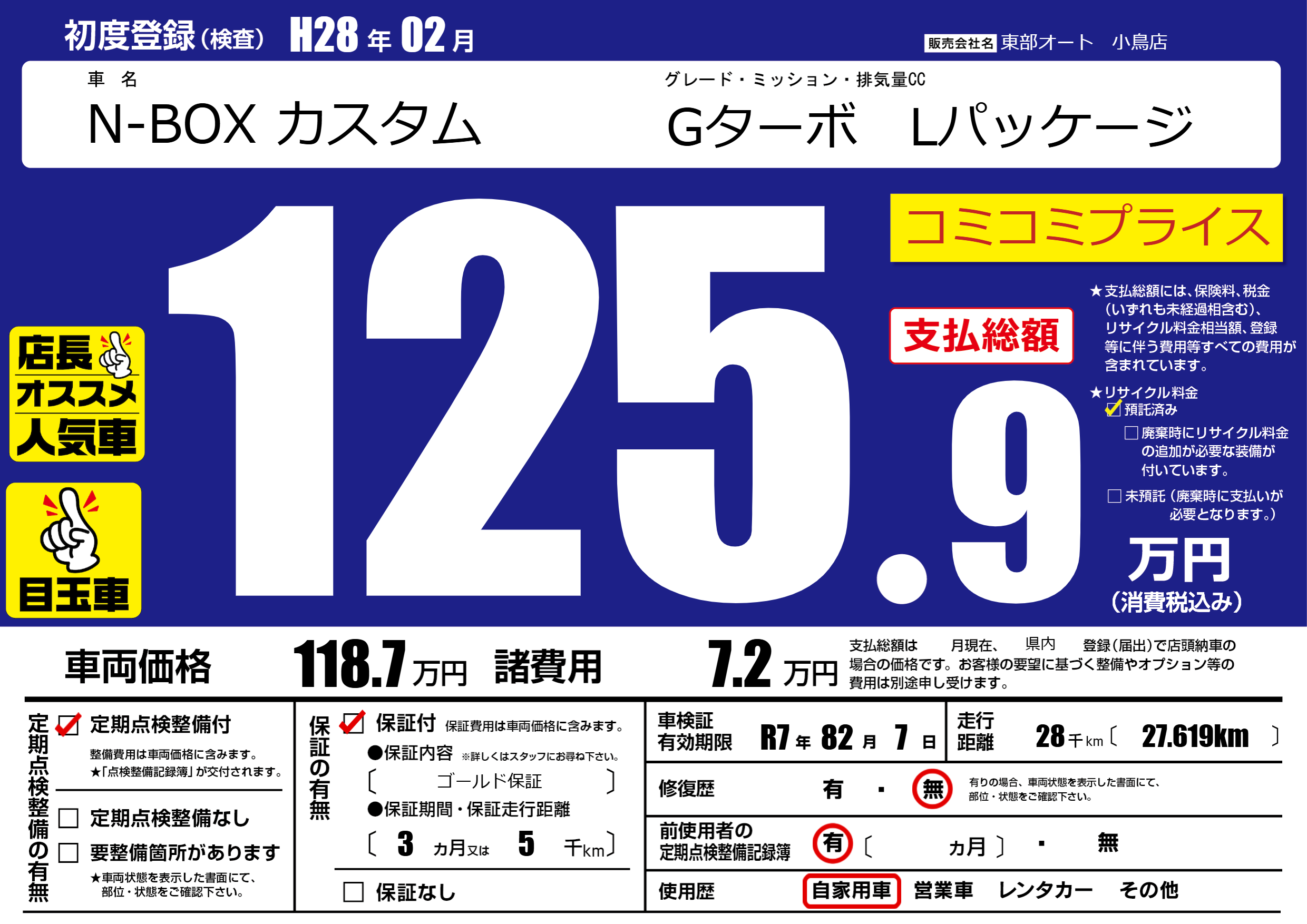 なし | 車検制限 | R7年82月7月 |