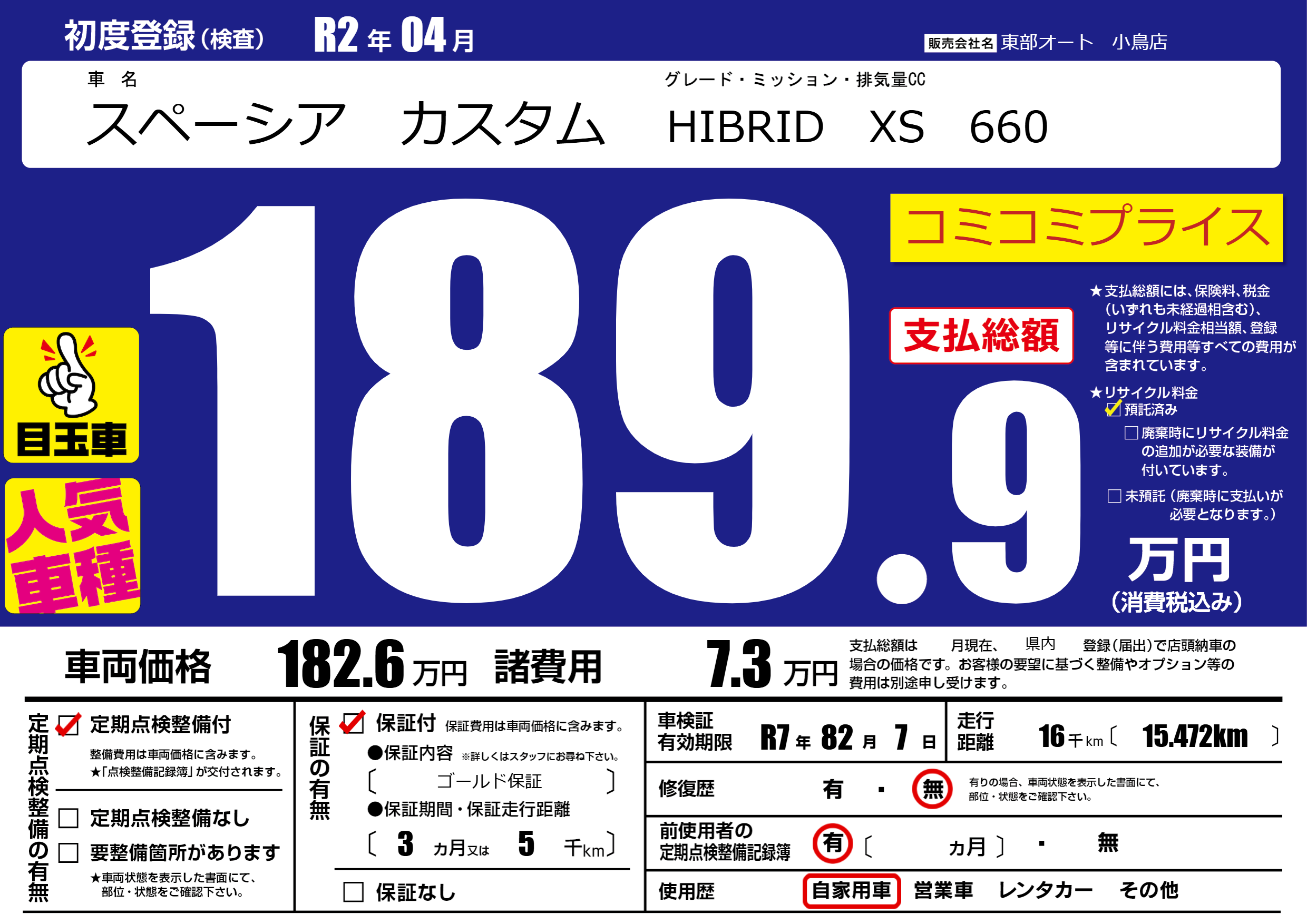 なし | 車検制限 | R7年82月7月 |